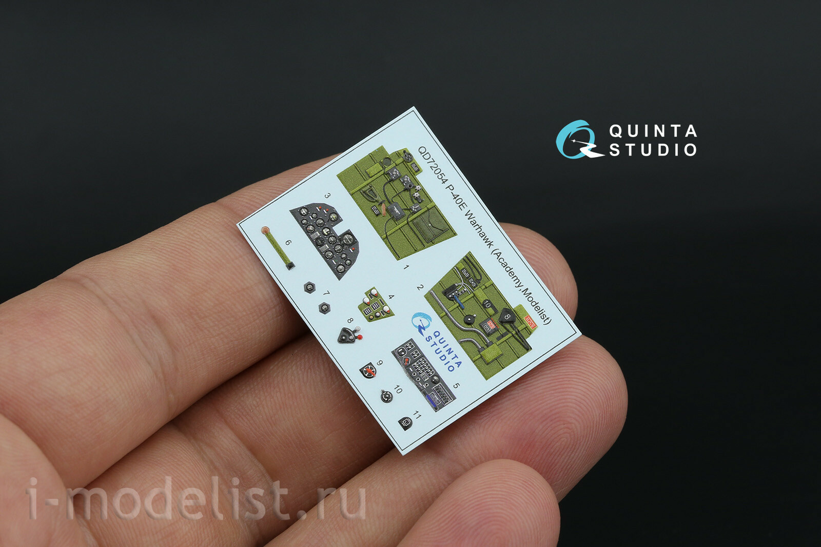 QD+72054 Quinta Studio 1/72 3D Декаль интерьера кабины P-40E Warhawk (Academy/Моделист) (с 3D-печатными деталями)