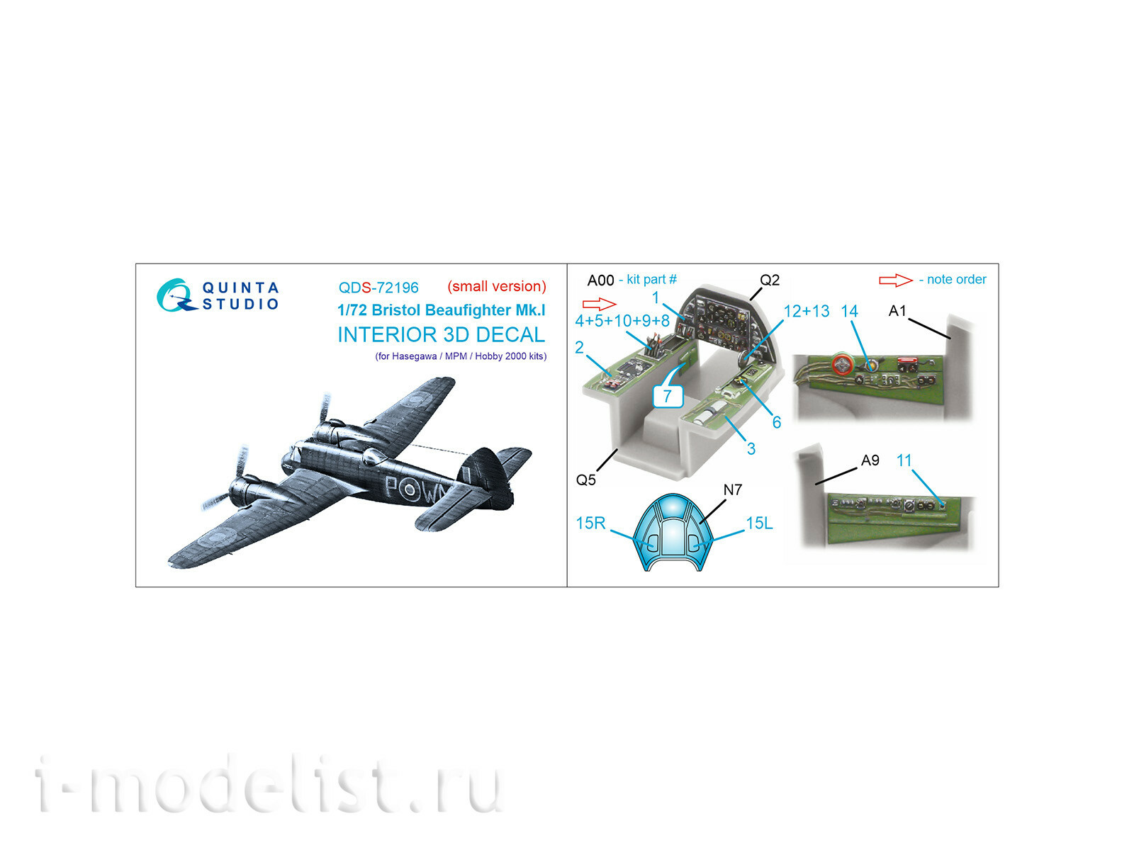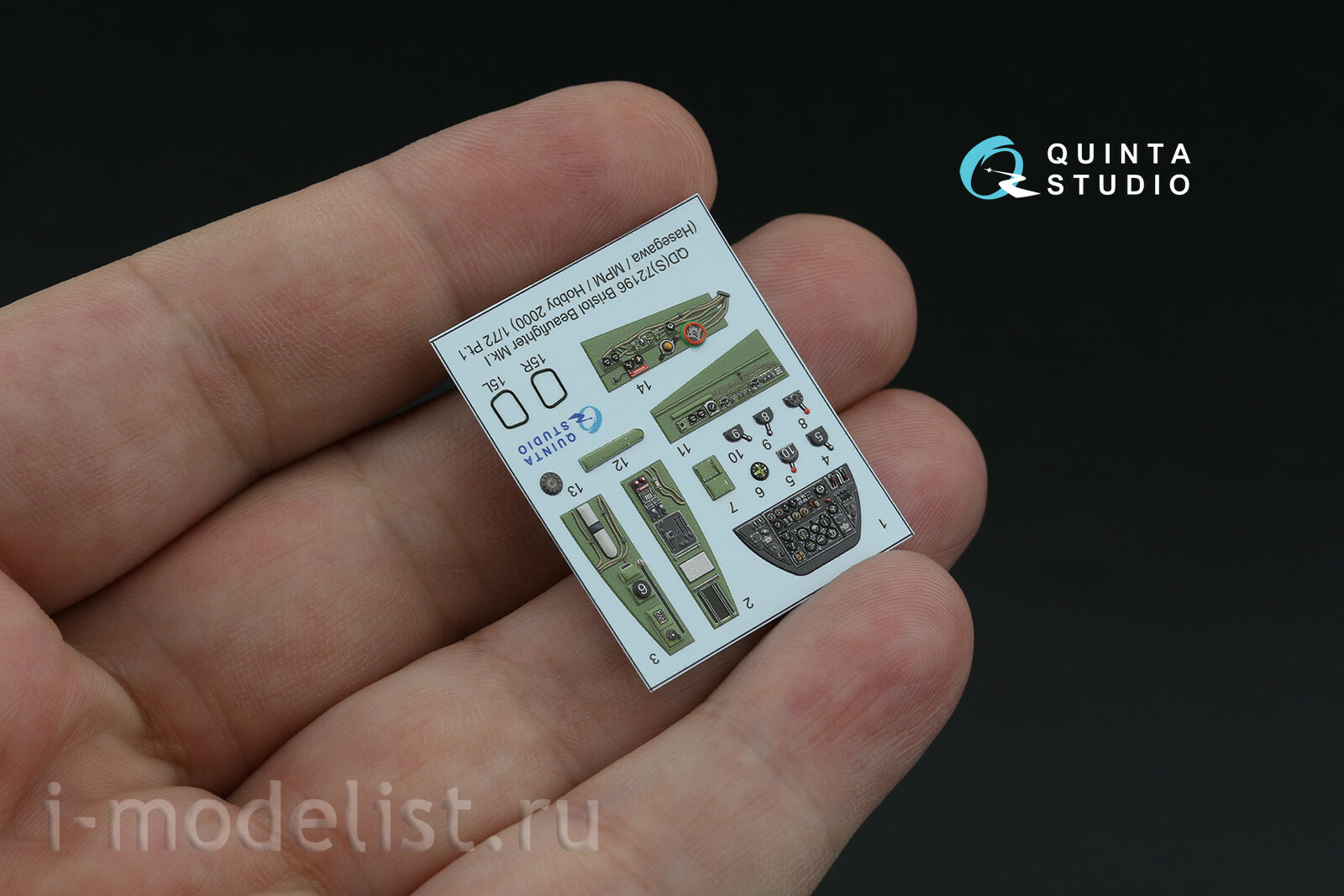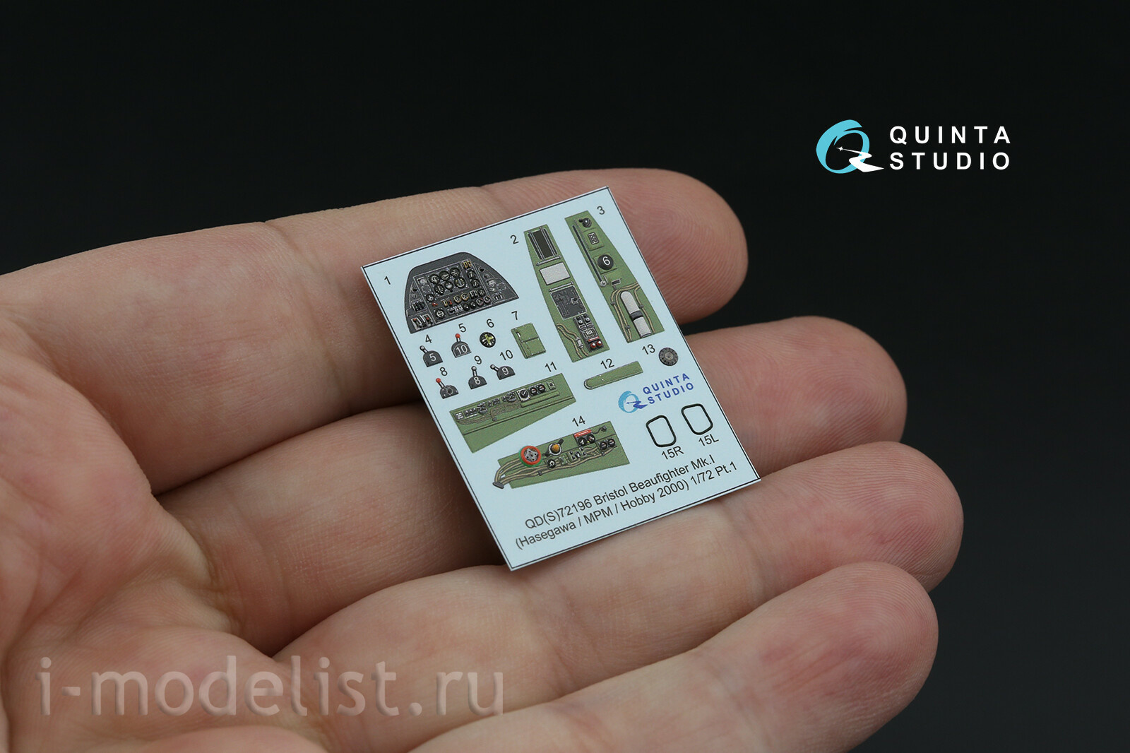 QDS-72196 Quinta Studio 1/72 3D Декаль интерьера кабины Bristol Beaufighter Mk.I (Hasegawa/MPM/Hobby2000) (малая версия)