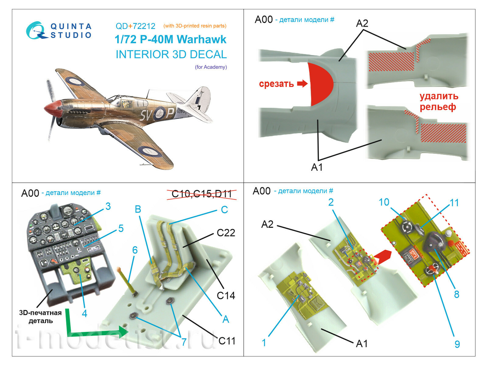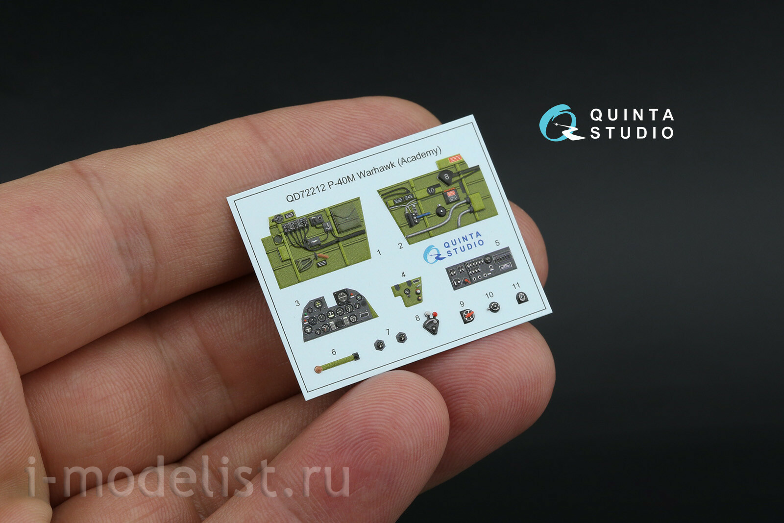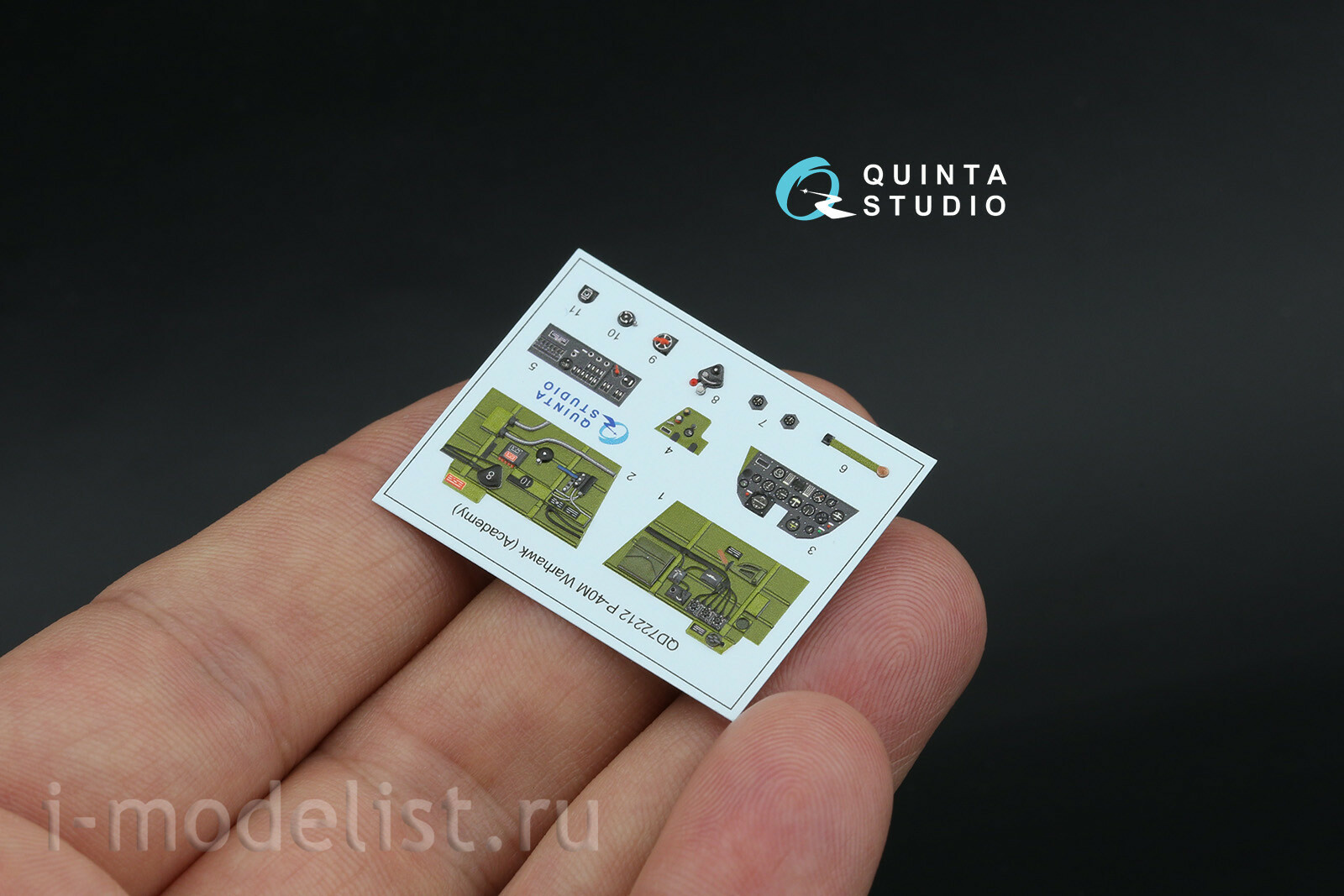 QD+72212 Quinta Studio 1/72 3D Декаль интерьера кабины P-40M Warhawk (Academy) (с 3D-печатными деталями)