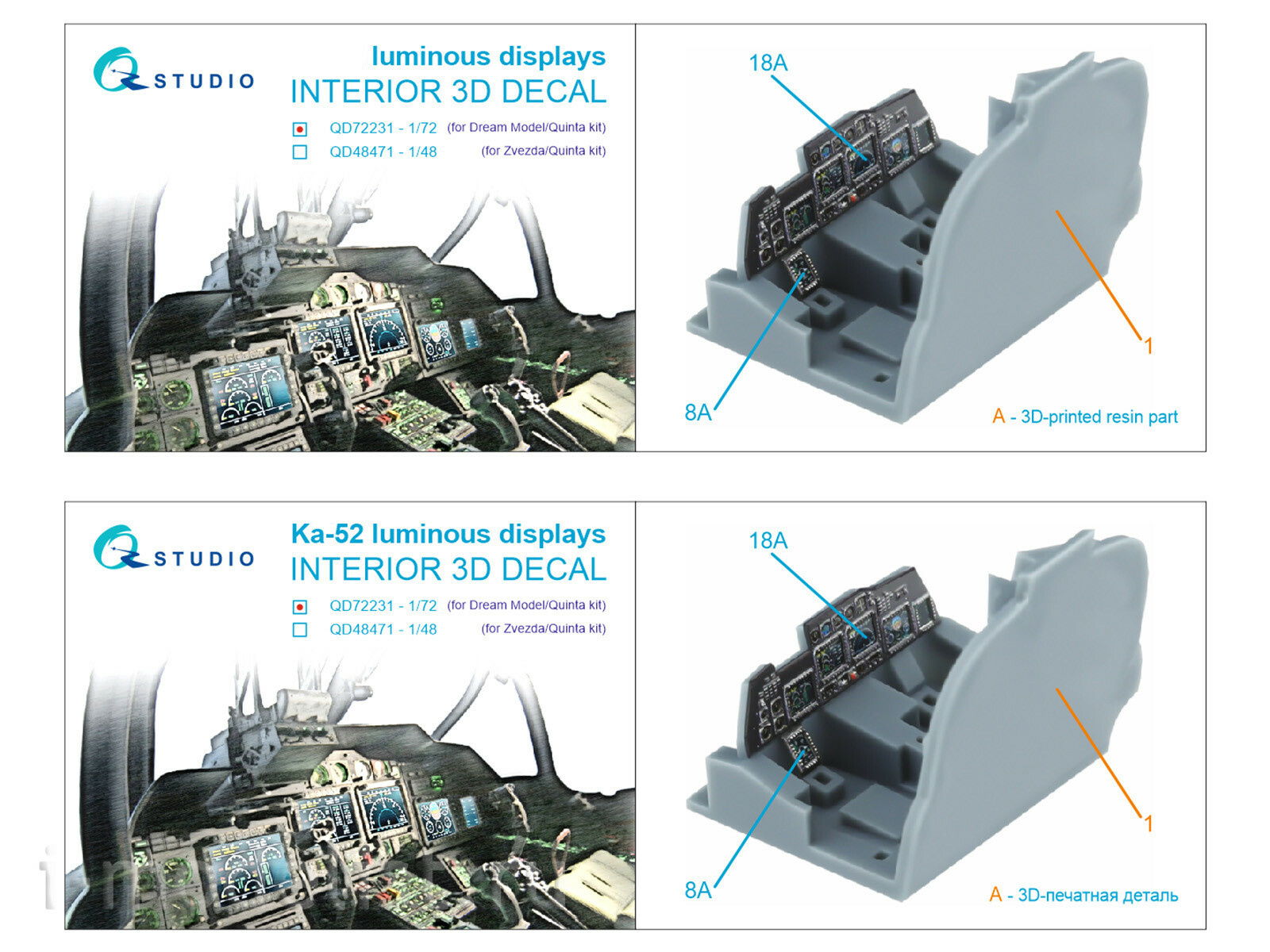 QD72231 Quinta Studio 1/72 3D Декаль интерьера кабины К-52 включенные дисплеи для QD+72229 (Dream Model/Quinta Models)