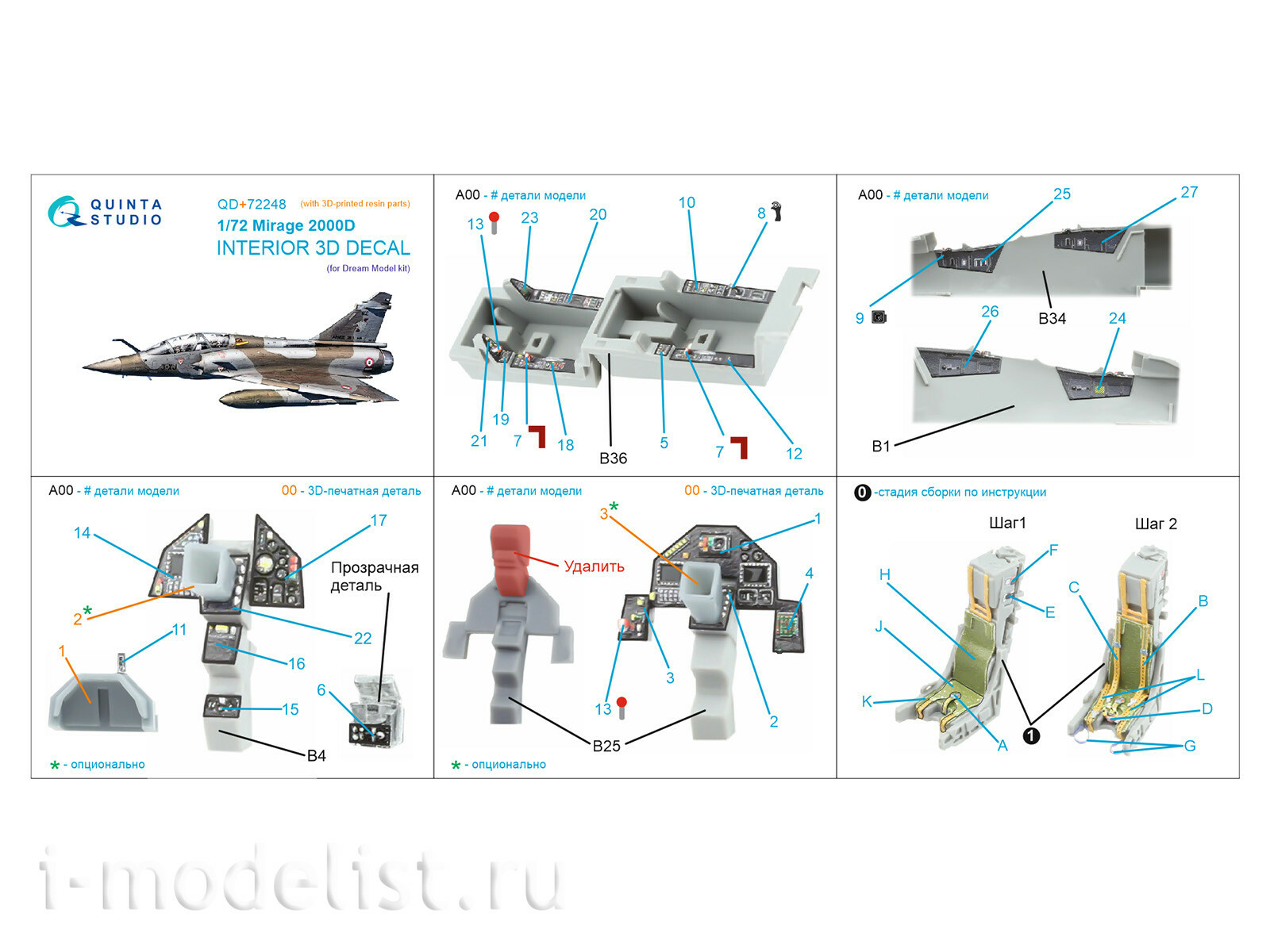 QD+72248 Quinta Studio 1/72 3D Декаль интерьера кабины Mirage 2000D (Dream Model) (с 3D-печатными деталями)