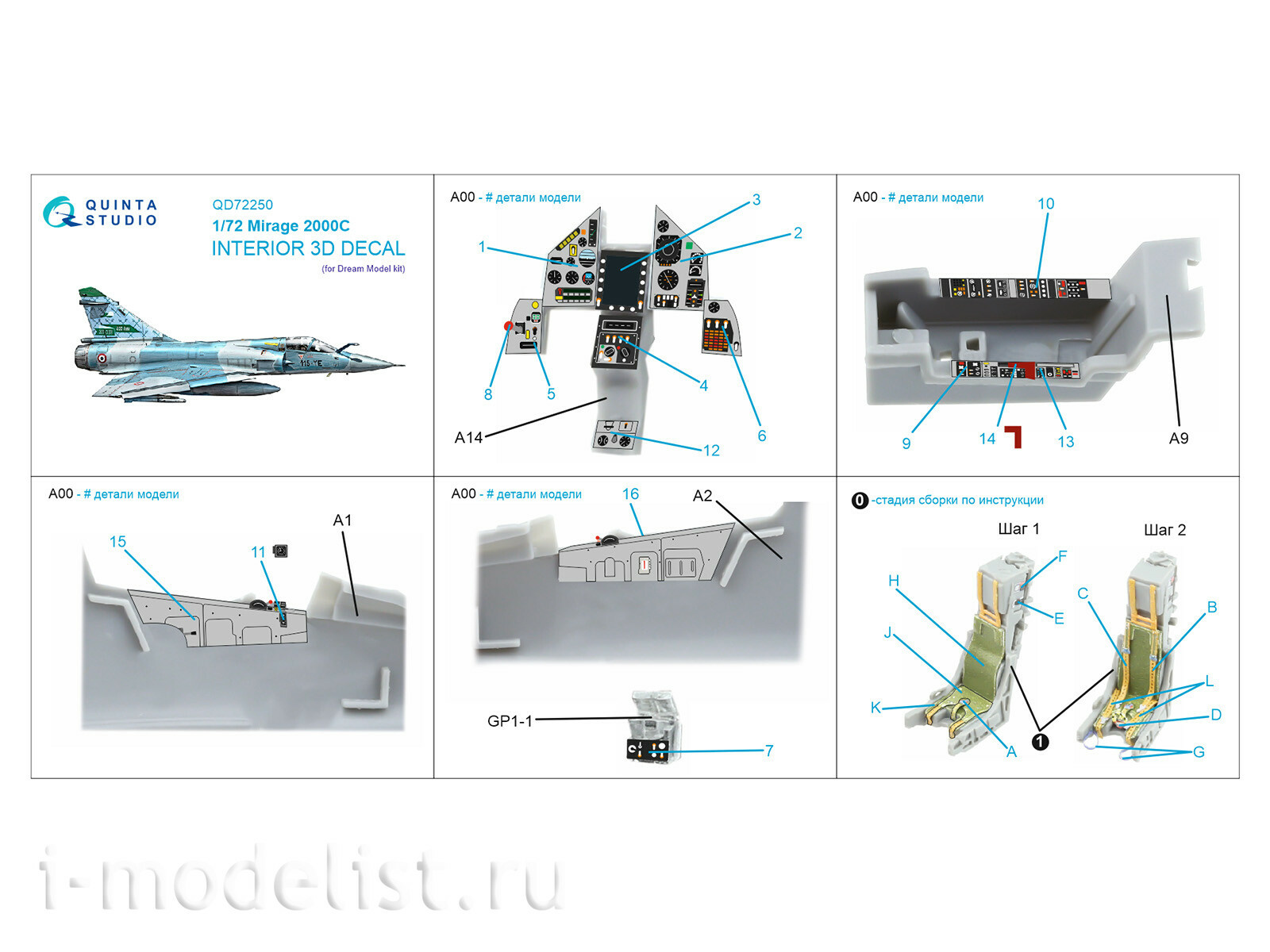 QD72250 Quinta Studio 1/72 3D Декаль интерьера кабины Mirage 2000C (Dream Model)