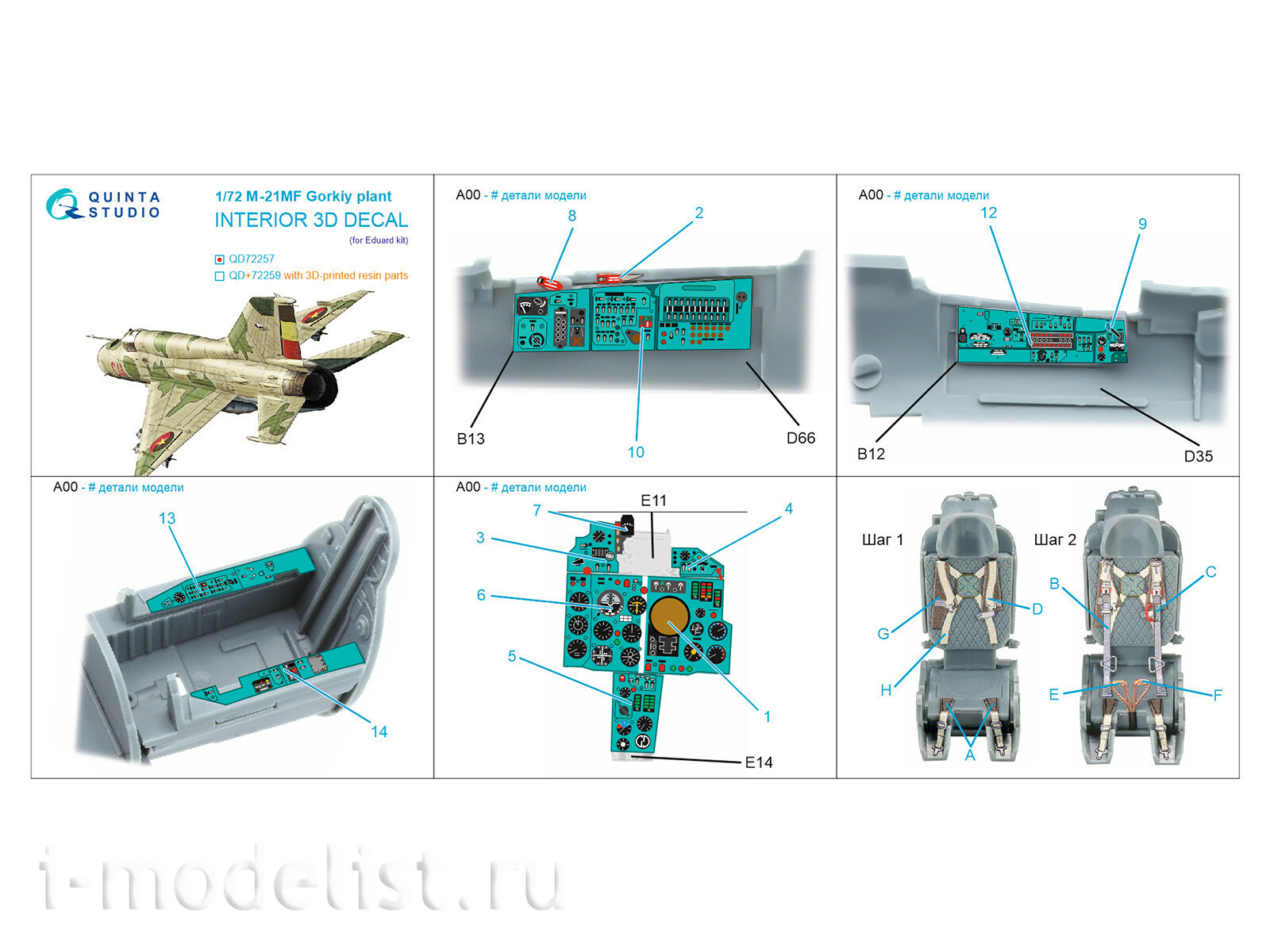 QD72257 Quinta Studio 1/72 3D Декаль интерьера кабины MiGG-21МФ (Горьковского завода) (Eduard)