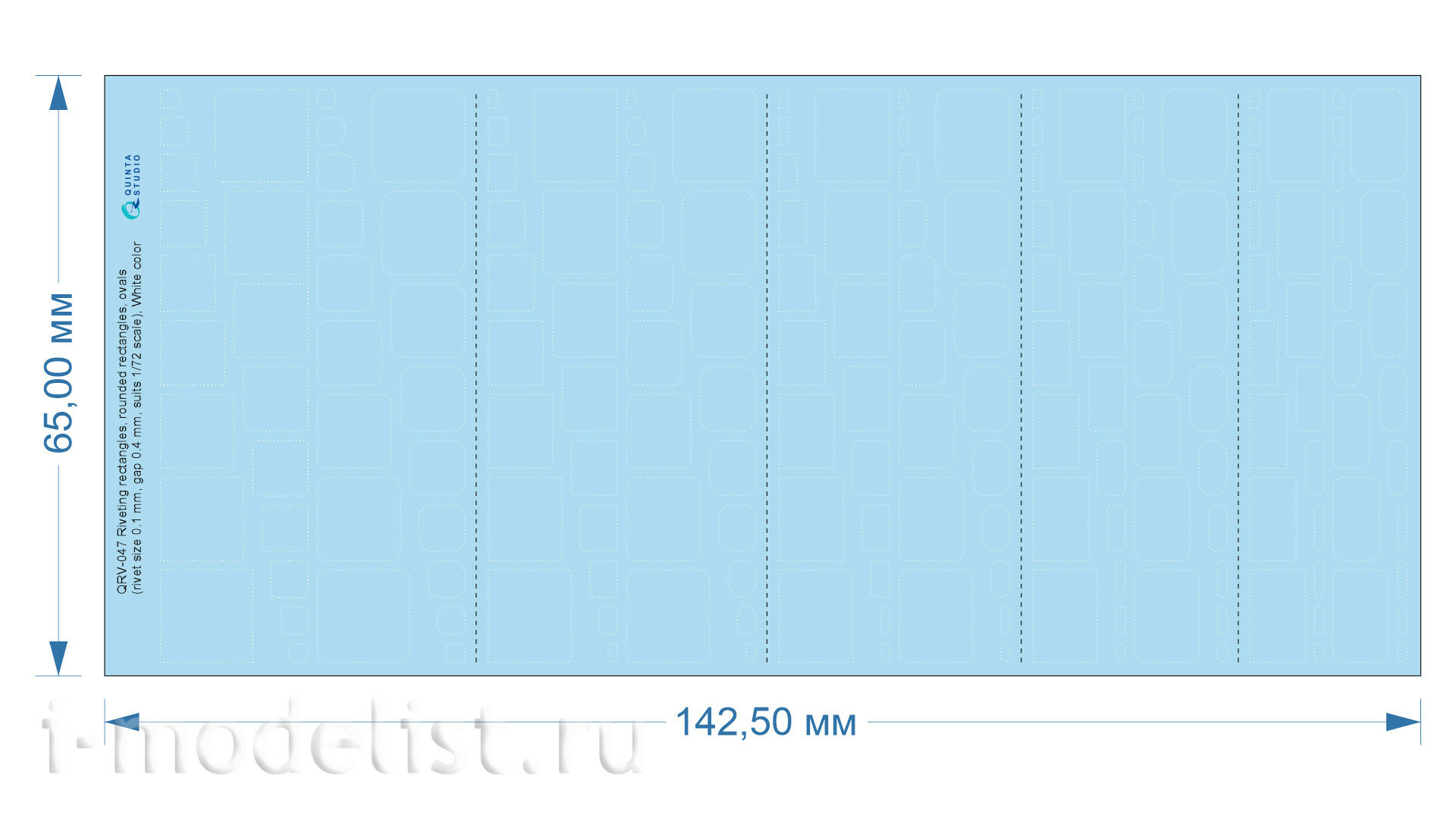 QRV-047 Quinta Studio 1/72 Клепочные ряды: прямоугольники и овалы (размер клепки 0.10 mm, интервал 0.4 mm, масштаб 1/72), белые
