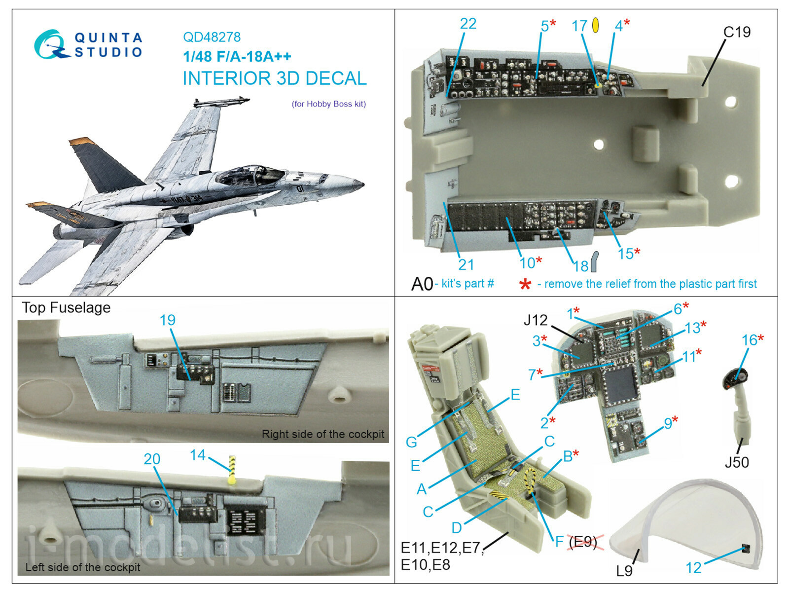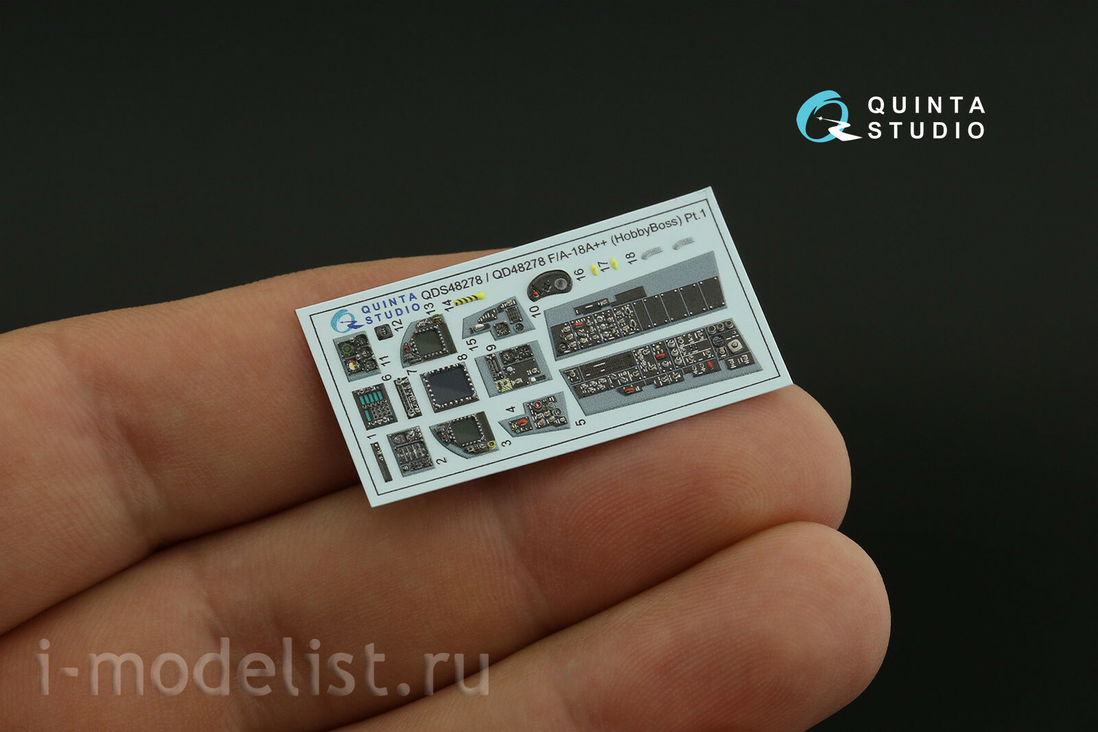 QD48278 Quinta Studio 1/48 3D Декаль интерьера кабины F/A-18А++ (HobbyBoss)