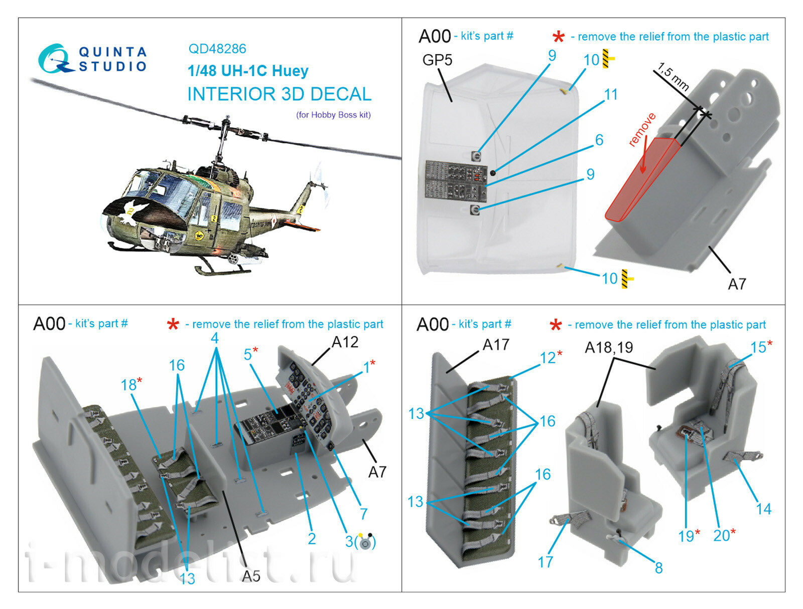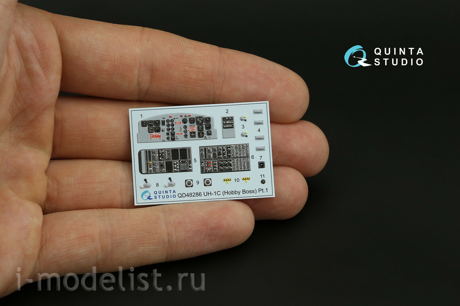 QD48286 Quinta Studio 1/48 3D Декаль интерьера кабины UH-1C (HobbyBoss)