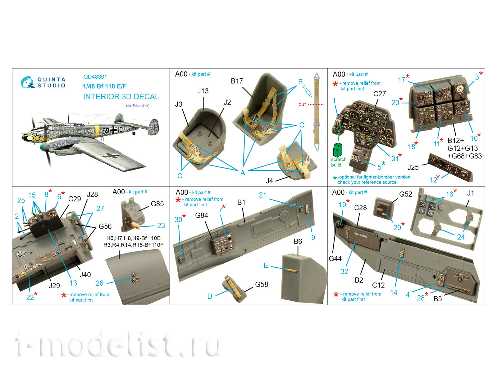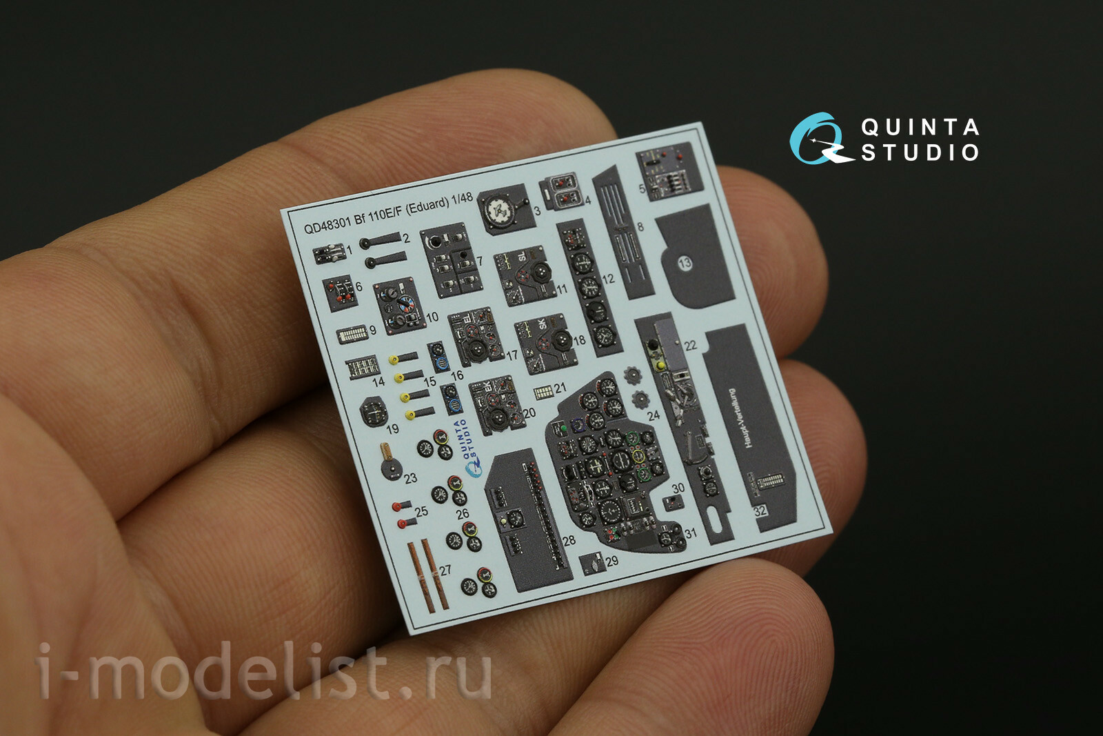 QD48301 Quinta Studio 1/48 3D Декаль интерьера кабины Bf 110E/F (Eduard)