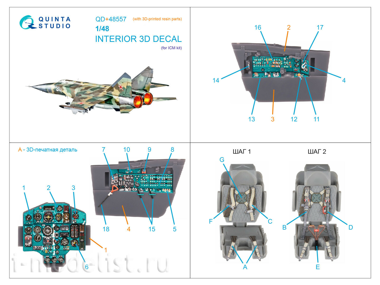 QD+48557 Quinta Studio 1/48 3D Декаль интерьера кабины MiGG-25БМ (ICM) (с 3D-печатными деталями)
