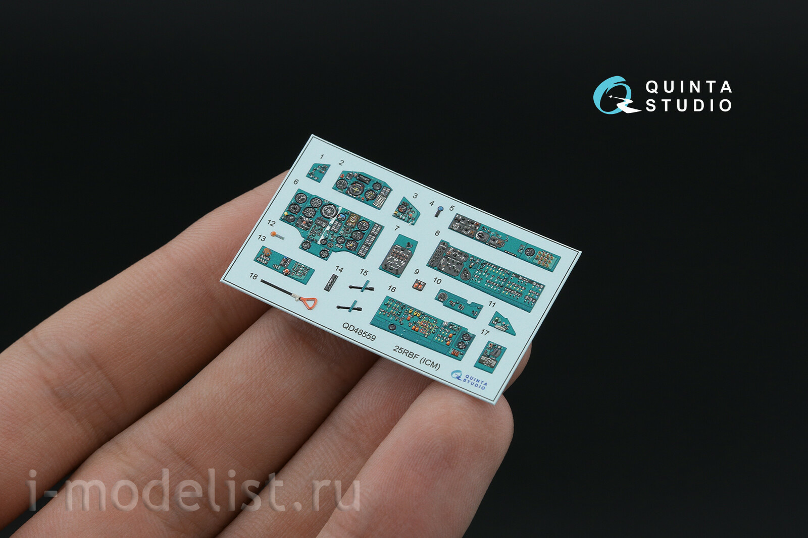 QD+48559 Quinta Studio 1/48 3D Декаль интерьера кабины MiGG-25РБФ (ICM) (с 3D-печатными деталями)