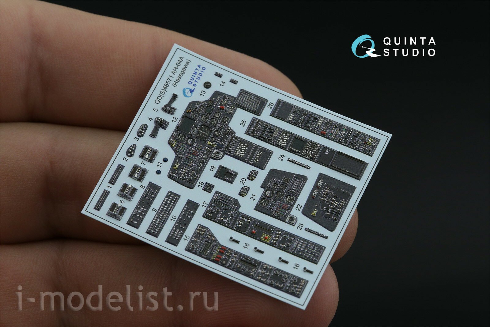 QDS-48571 Quinta Studio 1/48 3D Декаль интерьера кабины AH-64A (Hasegawa) (малая версия)