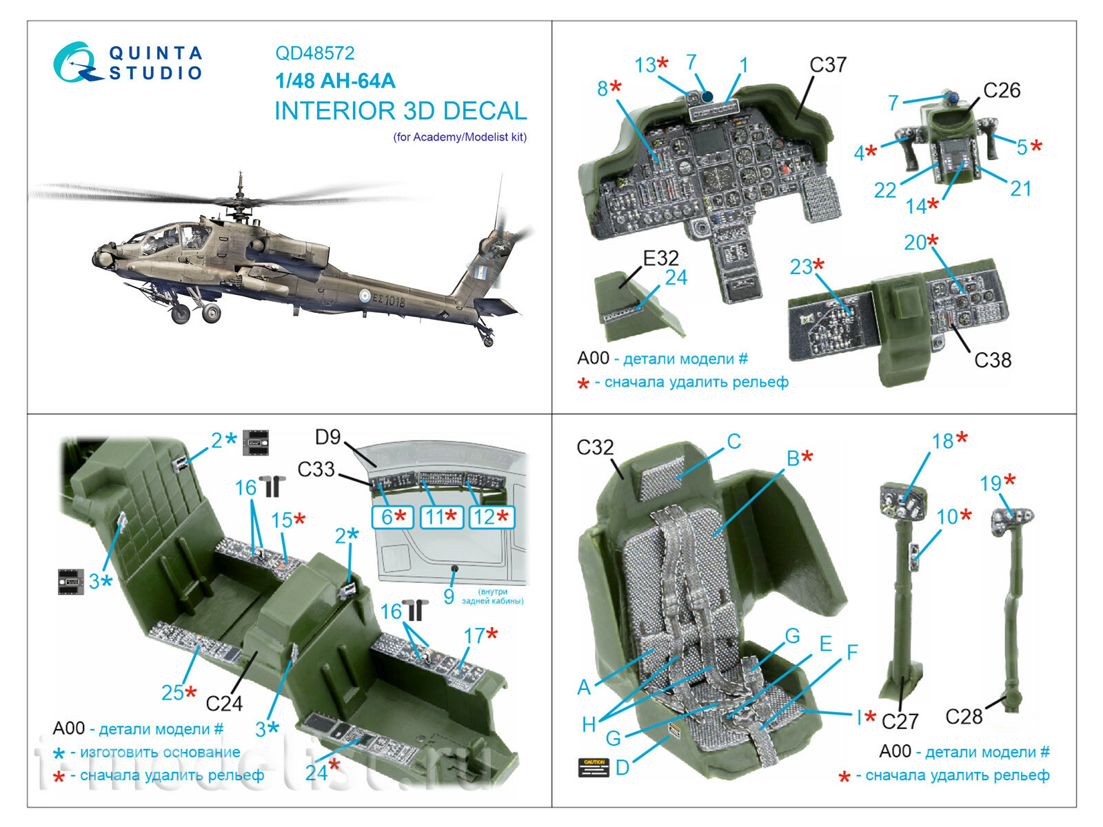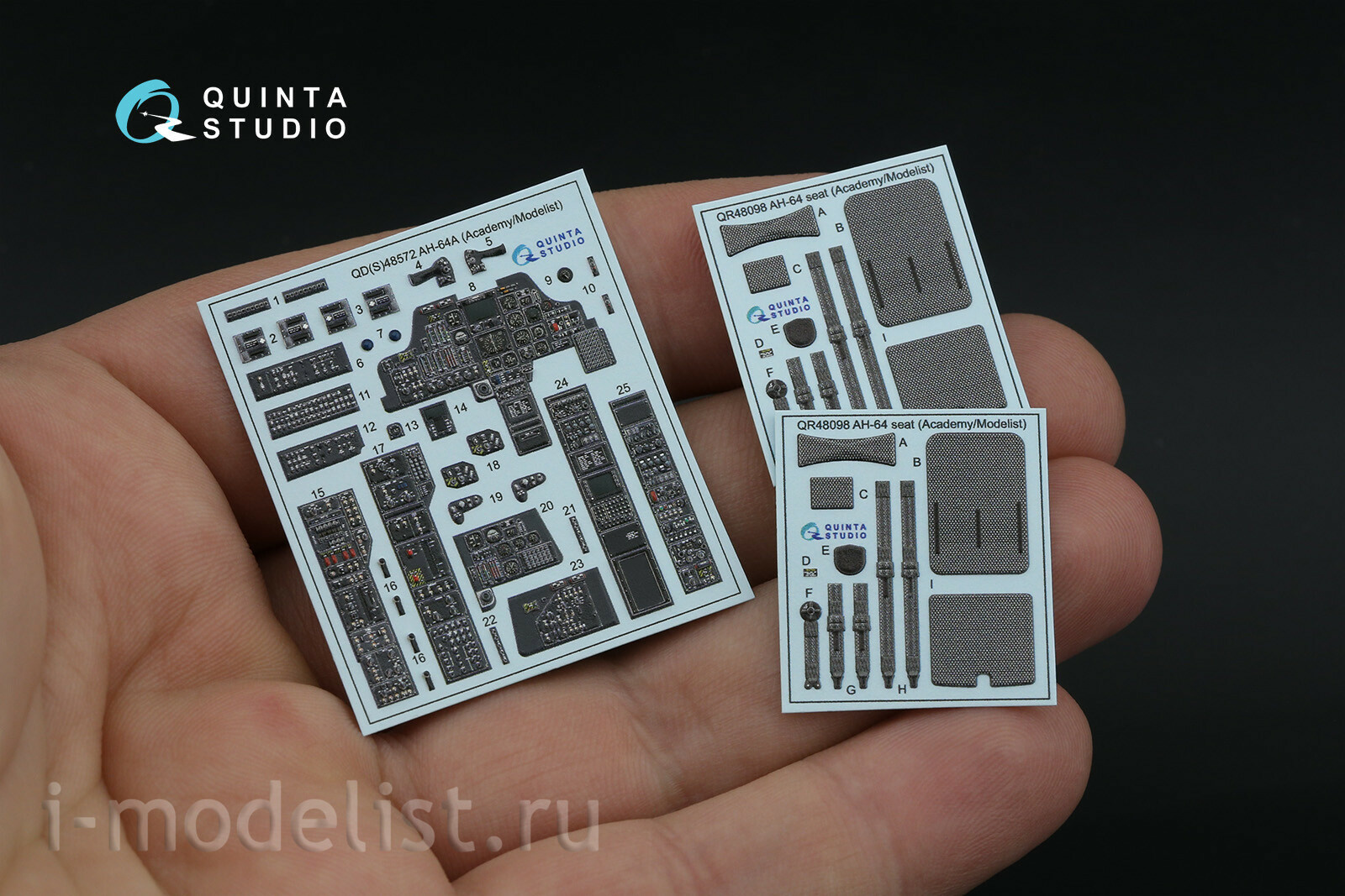 QD48572 Quinta Studio 1/48 3D Декаль интерьера кабины AH-64A (Academy/Modelist)