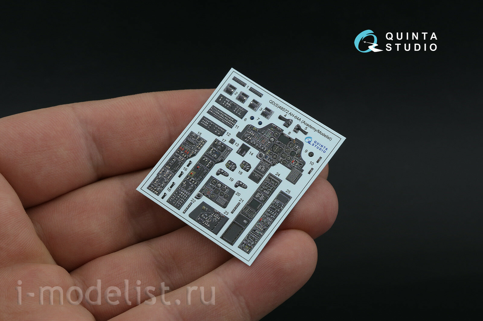 QDS-48572 Quinta Studio 1/48 3D Декаль интерьера кабины AH-64A (Academy/Modelist)