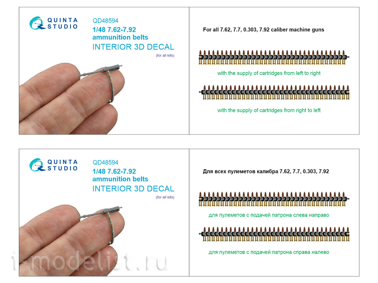 QD48594 Quinta Studio 1/48 Патронные ленты калибра 7.62-7.92 (для любых моделей)
