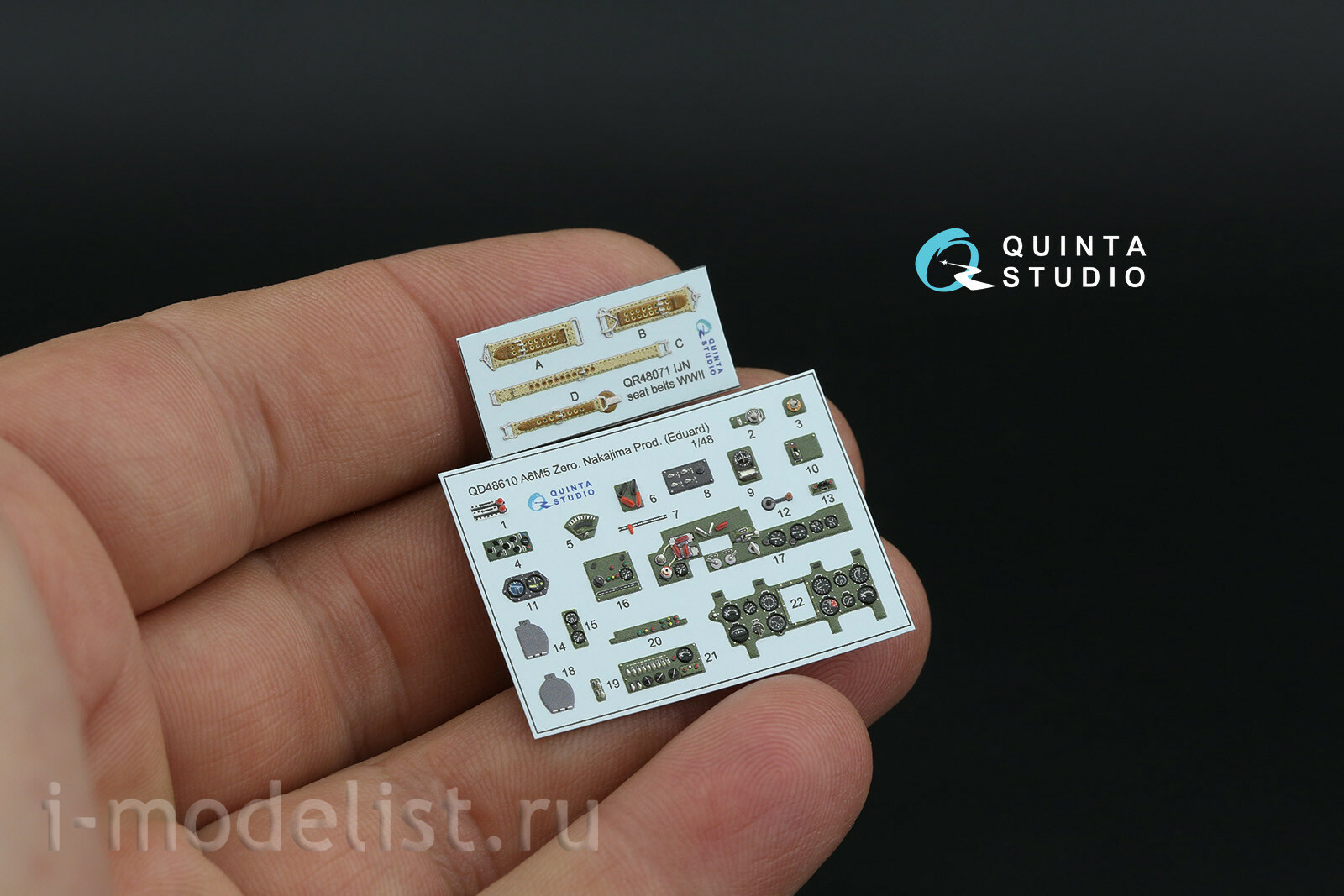 QD48610 Quinta Studio 1/48 3D Декаль интерьера кабины A6M5 Zero (производства Nakajima) (Eduard)