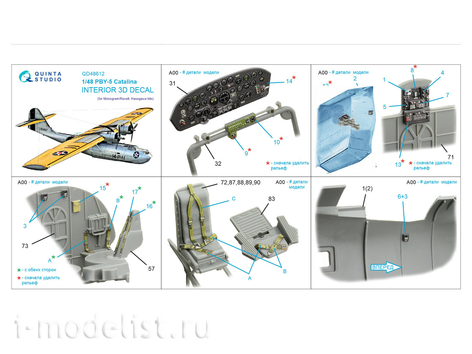 QD48612 Quinta Studio 1/48 3D Декаль интерьера кабины PBY-5 Catalina (Revell/Monogram)