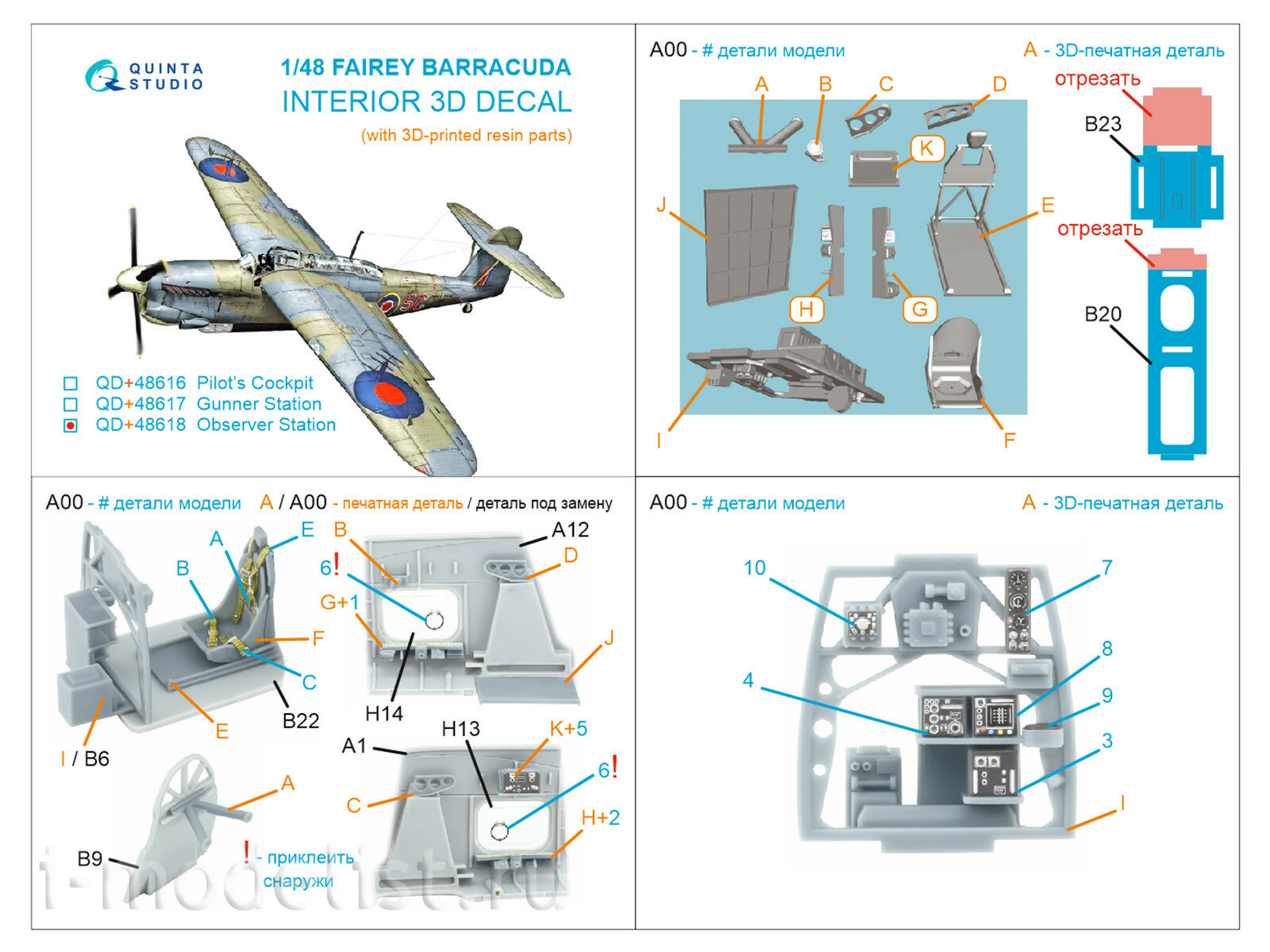 QD+48618 Quinta Studio 1/48 3D Декаль интерьера кабины Наблюдателя Fairey Barracuda (Trumpeter) (с 3D-печатными деталями)