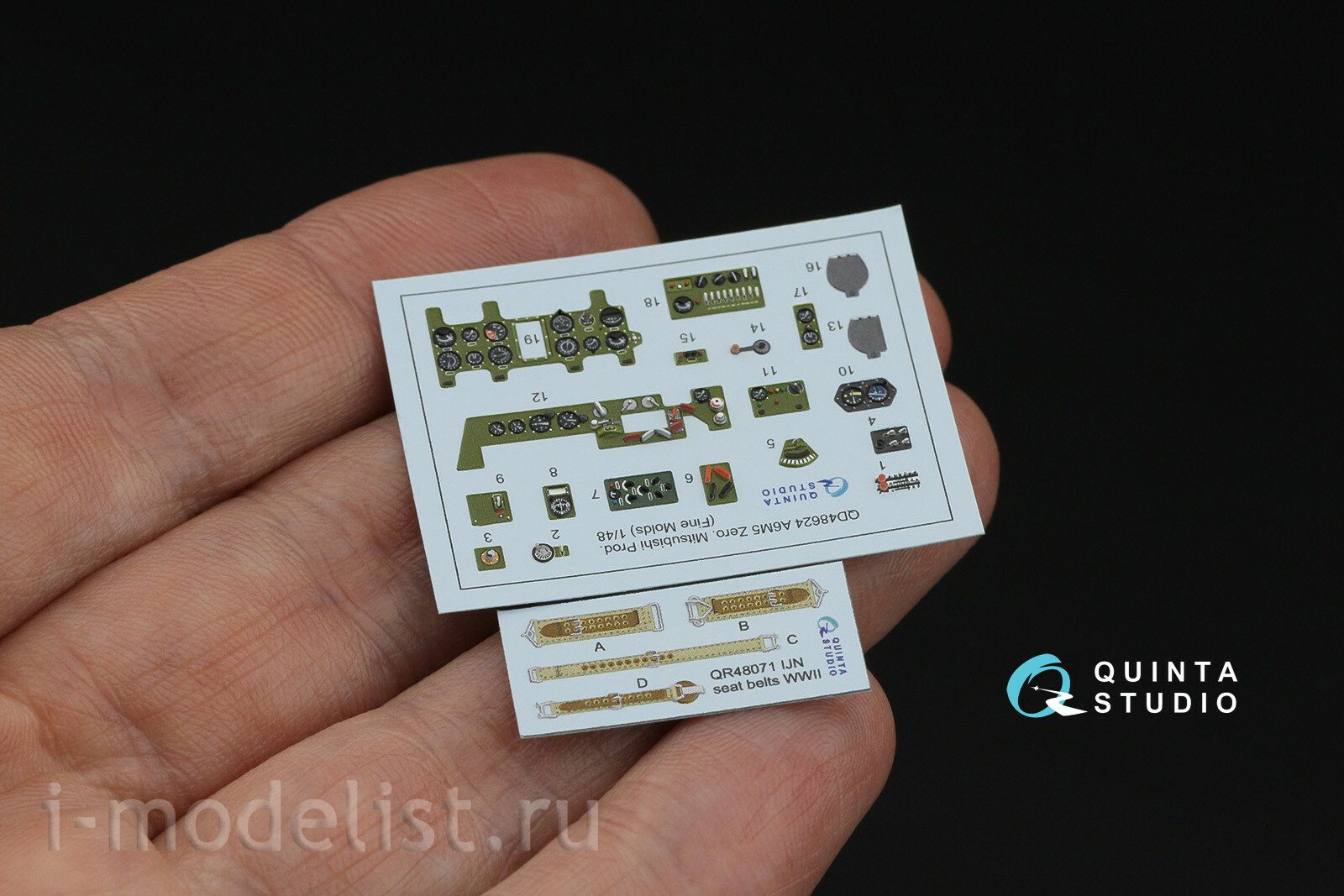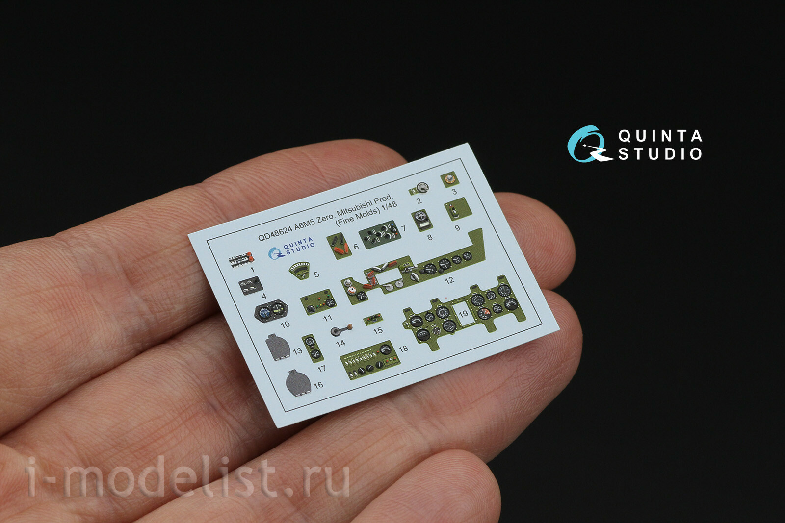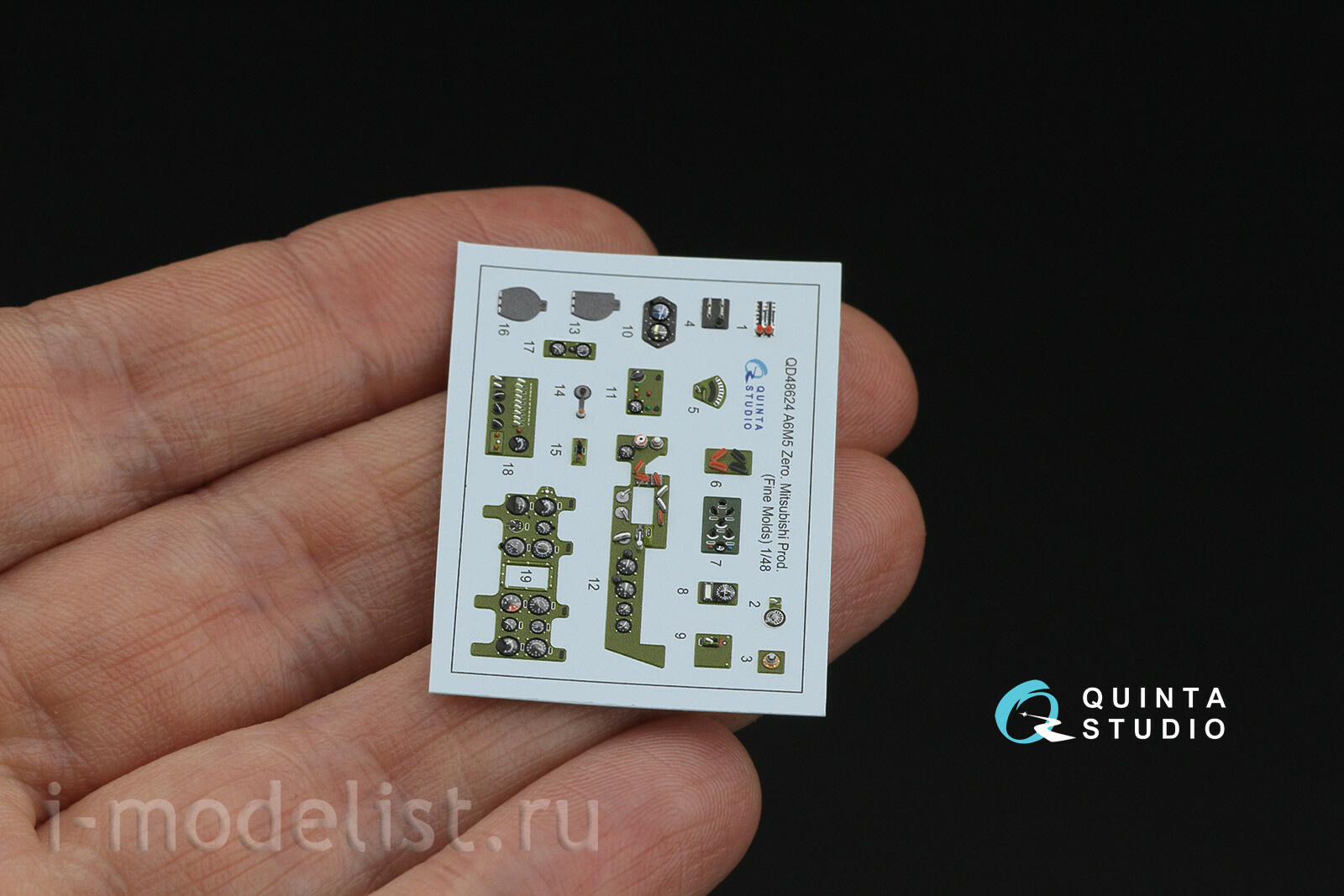 QD48624 Quinta Studio 1/48 3D Декаль интерьера кабины A6M5 Zero, пр-ва Mitsubishi (Fine Molds)