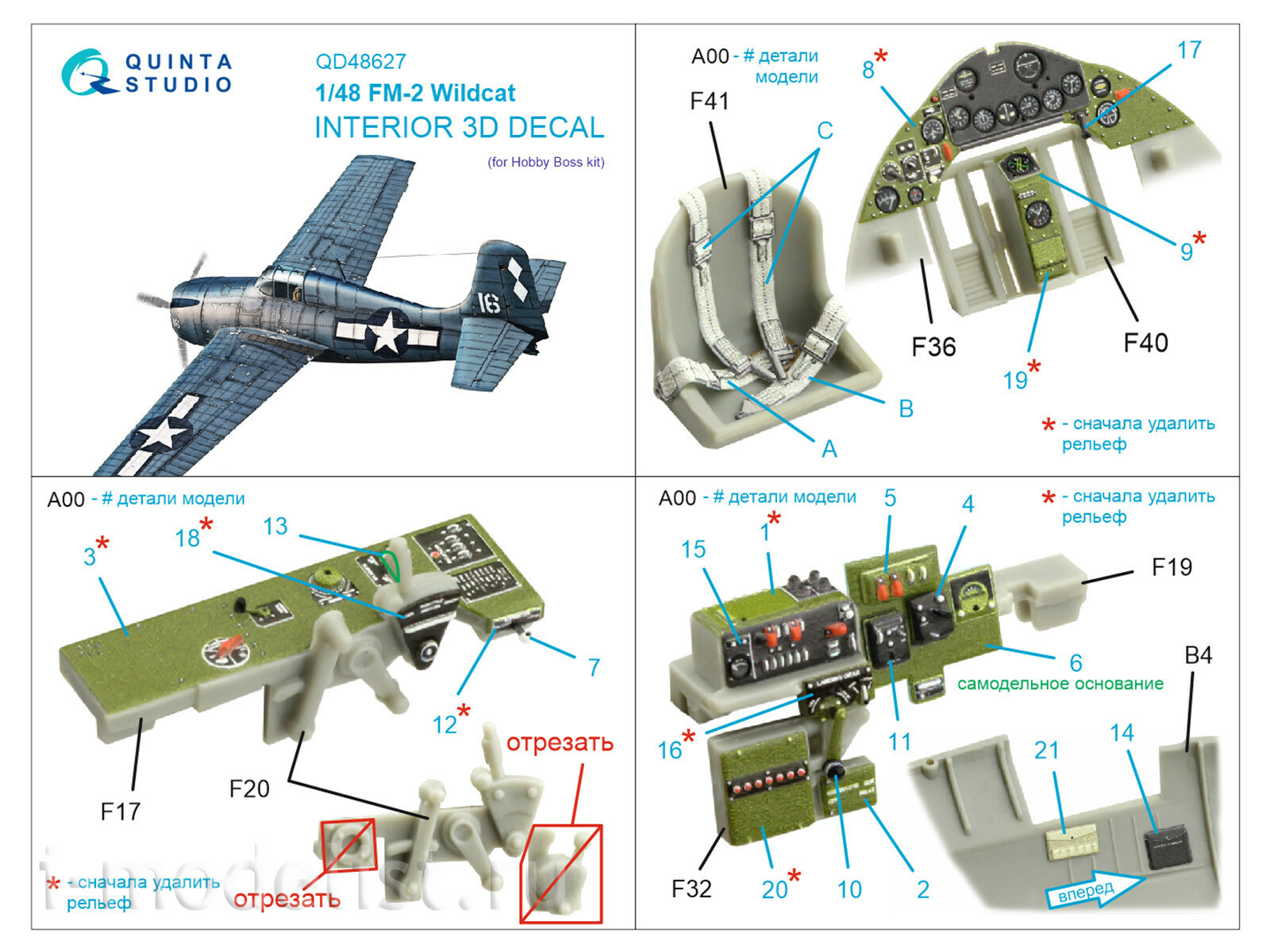 QD48627 Quinta Studio 1/48 3D Декаль интерьера кабины FM-2 Wildcat (HobbyBoss)