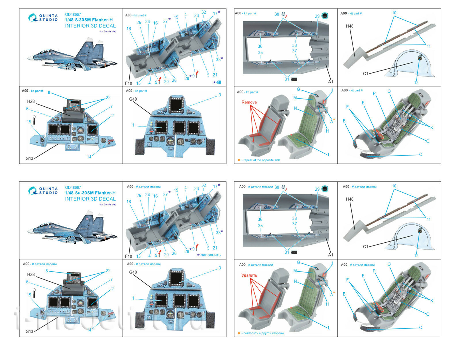 QD48667 Quinta Studio 1/48 3D Декаль интерьера кабины для Суххой-30СМ (Звезда)