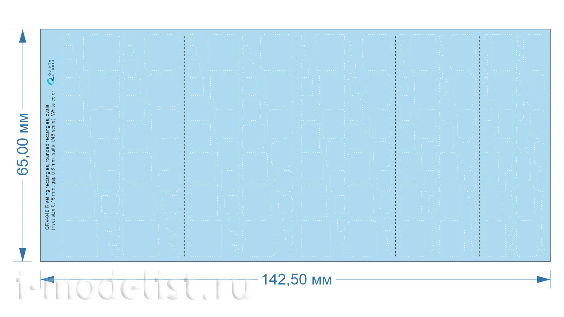 QRV-048 Quinta Studio 1/48 Клепочные ряды: прямоугольники и овалы (размер клепки 0.15 mm, интервал 0.6 mm, масштаб 1/48), белые