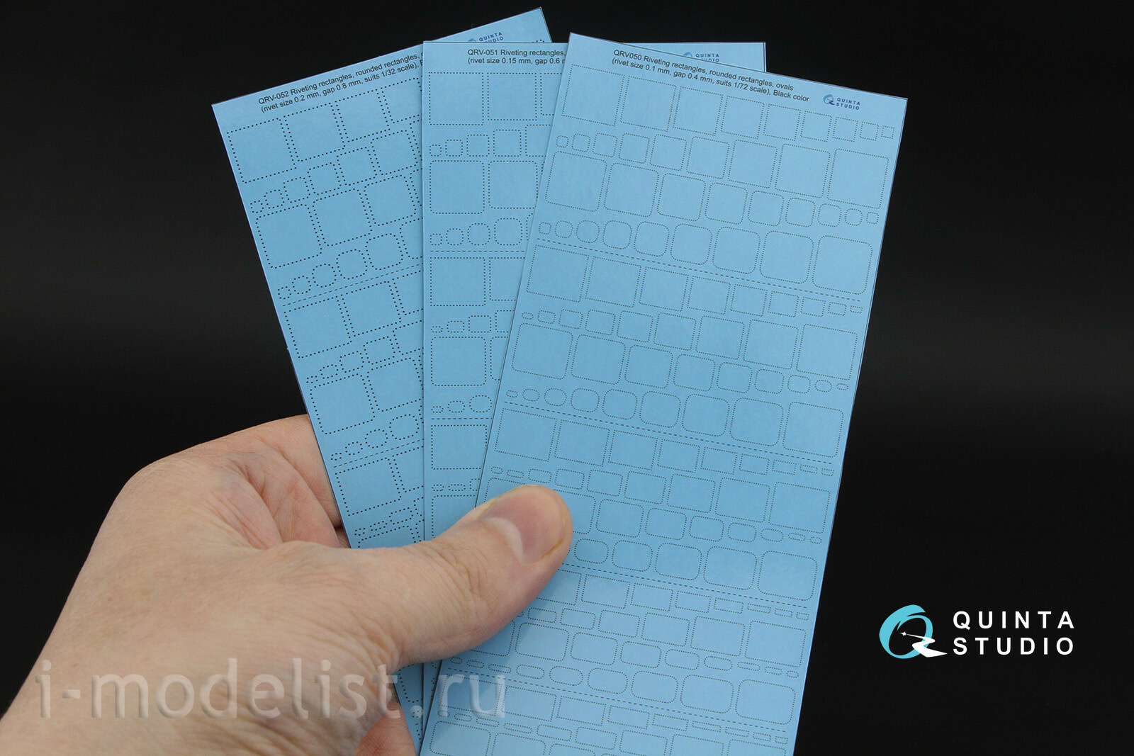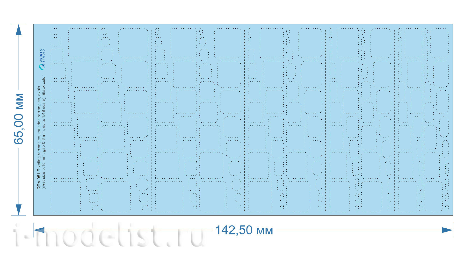 QRV-051 Quinta Studio 1/48 Клепочные ряды: прямоугольники и овалы (размер клепки 0.15 mm, интервал 0.6 mm, масштаб 1/48), черны