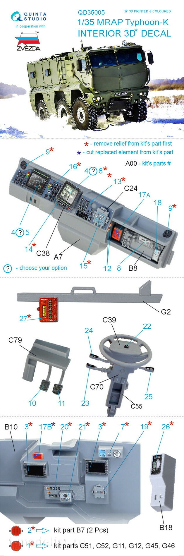 QD35005 Quinta Studio 1/35 3D Декаль интерьера кабины для Тайфун-К (для модели Звезда)