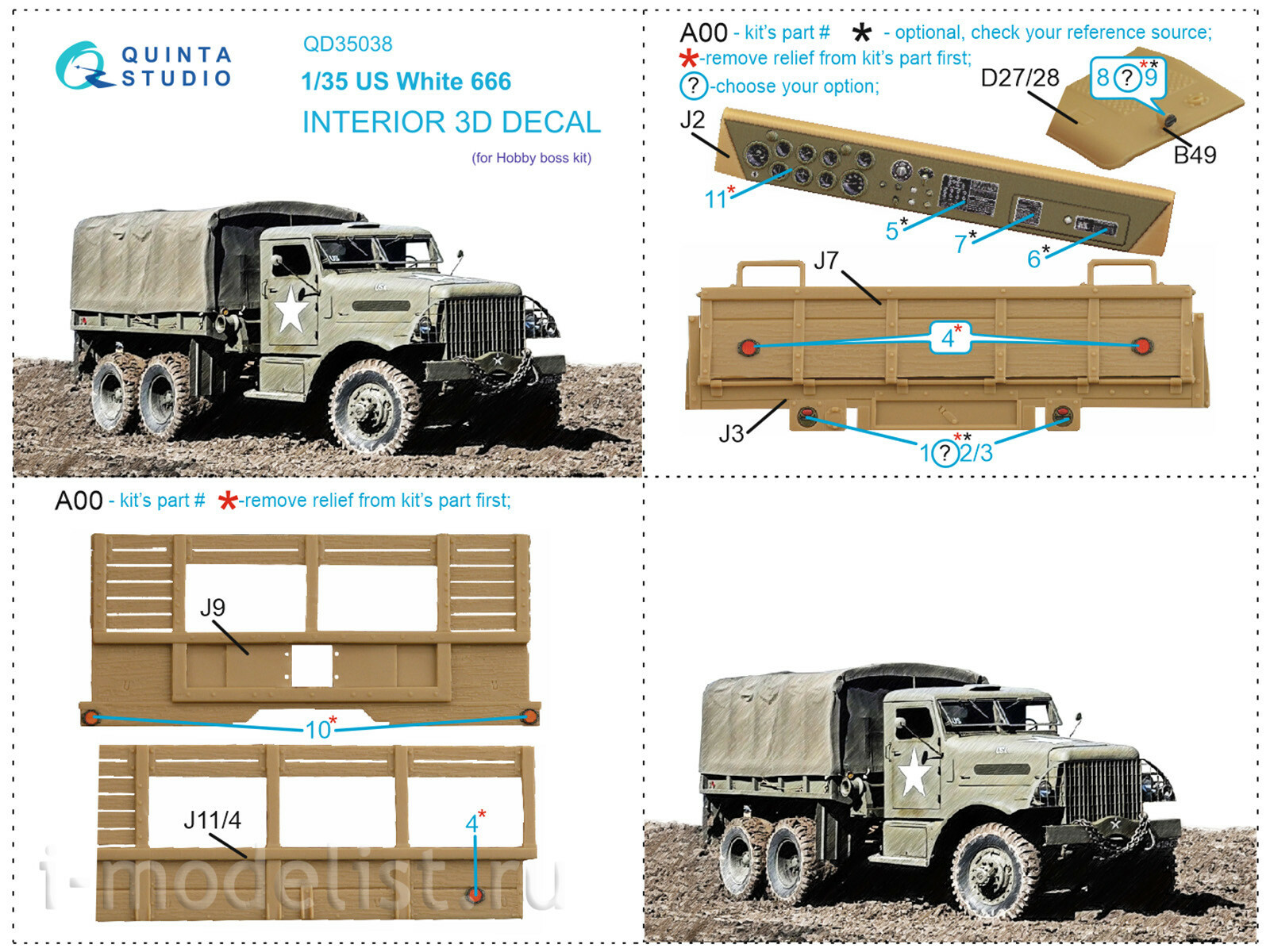 QD35038 Quinta Studio 1/35 3D Декаль интерьера кабины US White 666 (HobbyBoss)