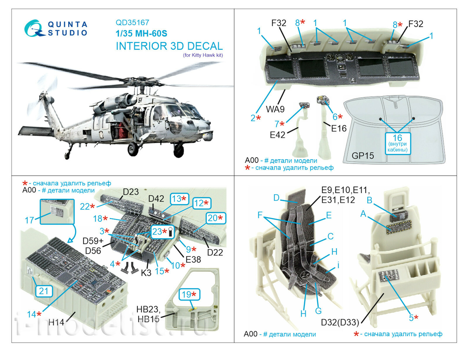 QD35167 Quinta Studio 1/35 3D Декаль интерьера кабины МН-60S Knighthawk (Kitty Hawk)