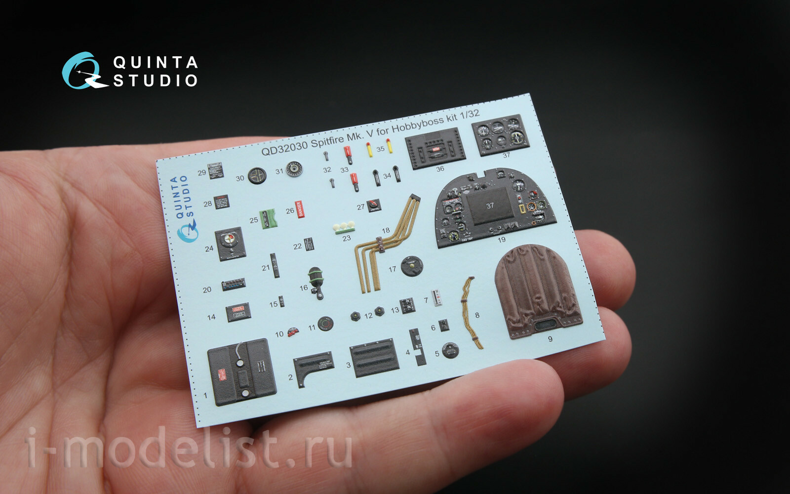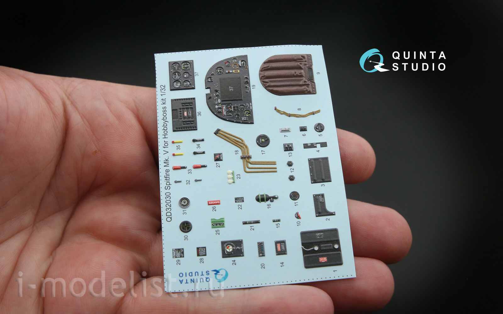 QD32030 Quinta Studio 1/32 3D Декаль интерьера кабины Spitfire Mk.V (для модели Hobbyboss)