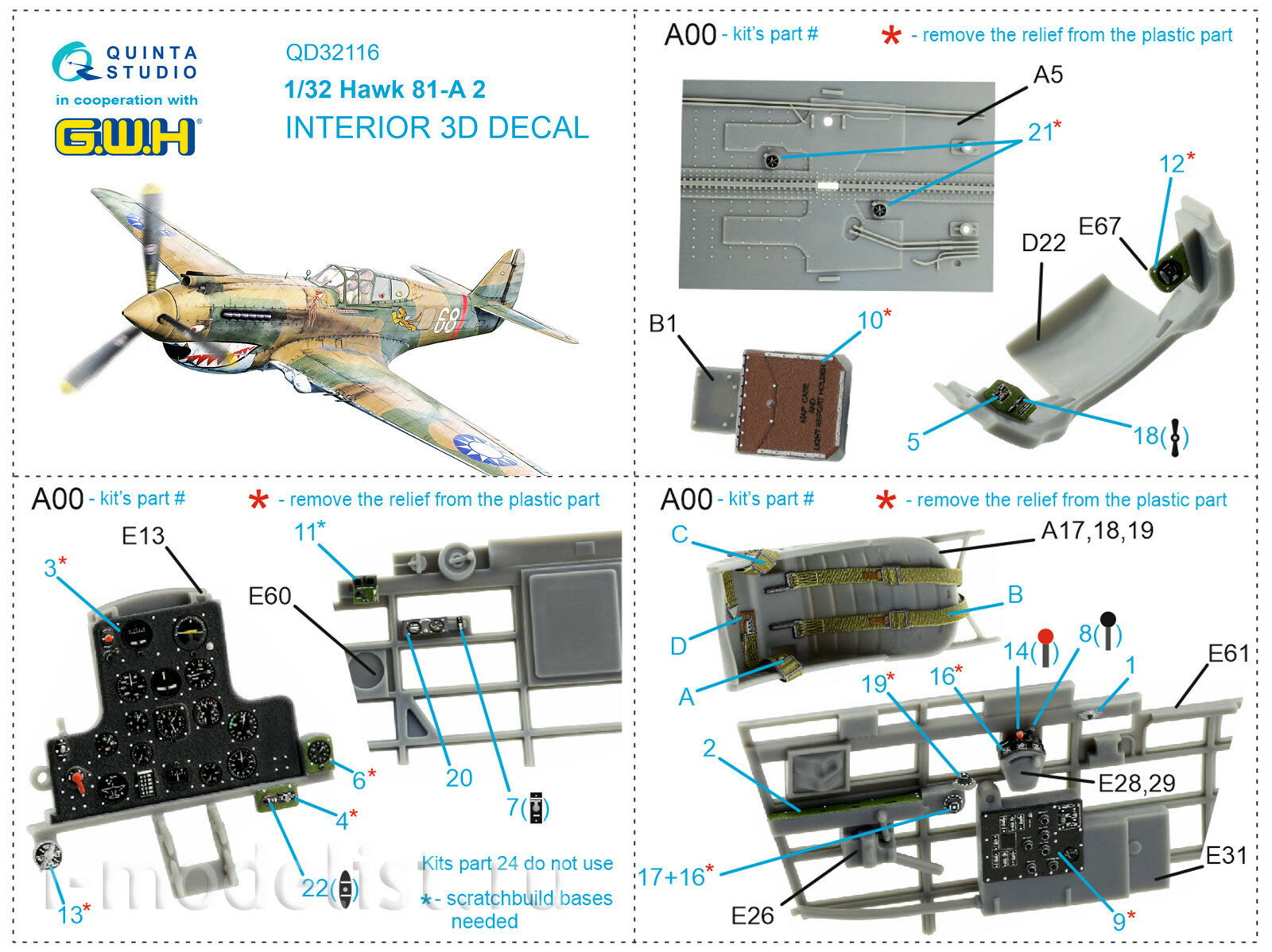 QD32116 Quinta Studio 1/32 3D Декаль интерьера кабины Hawk 81-A2 (GWH)