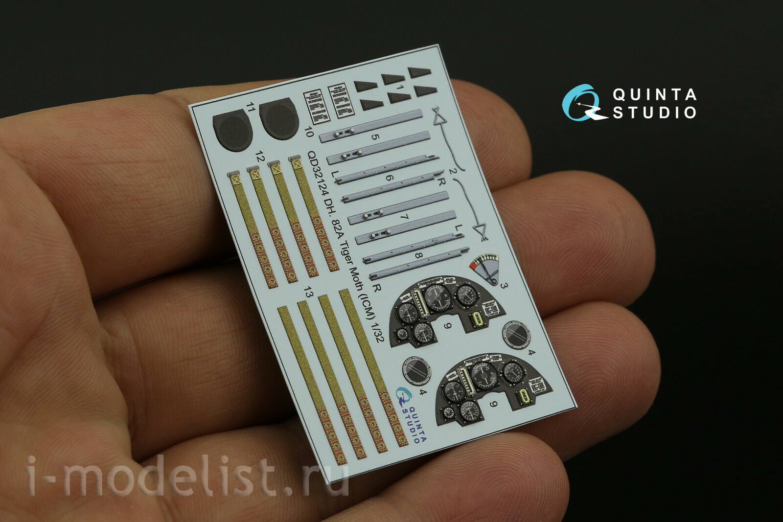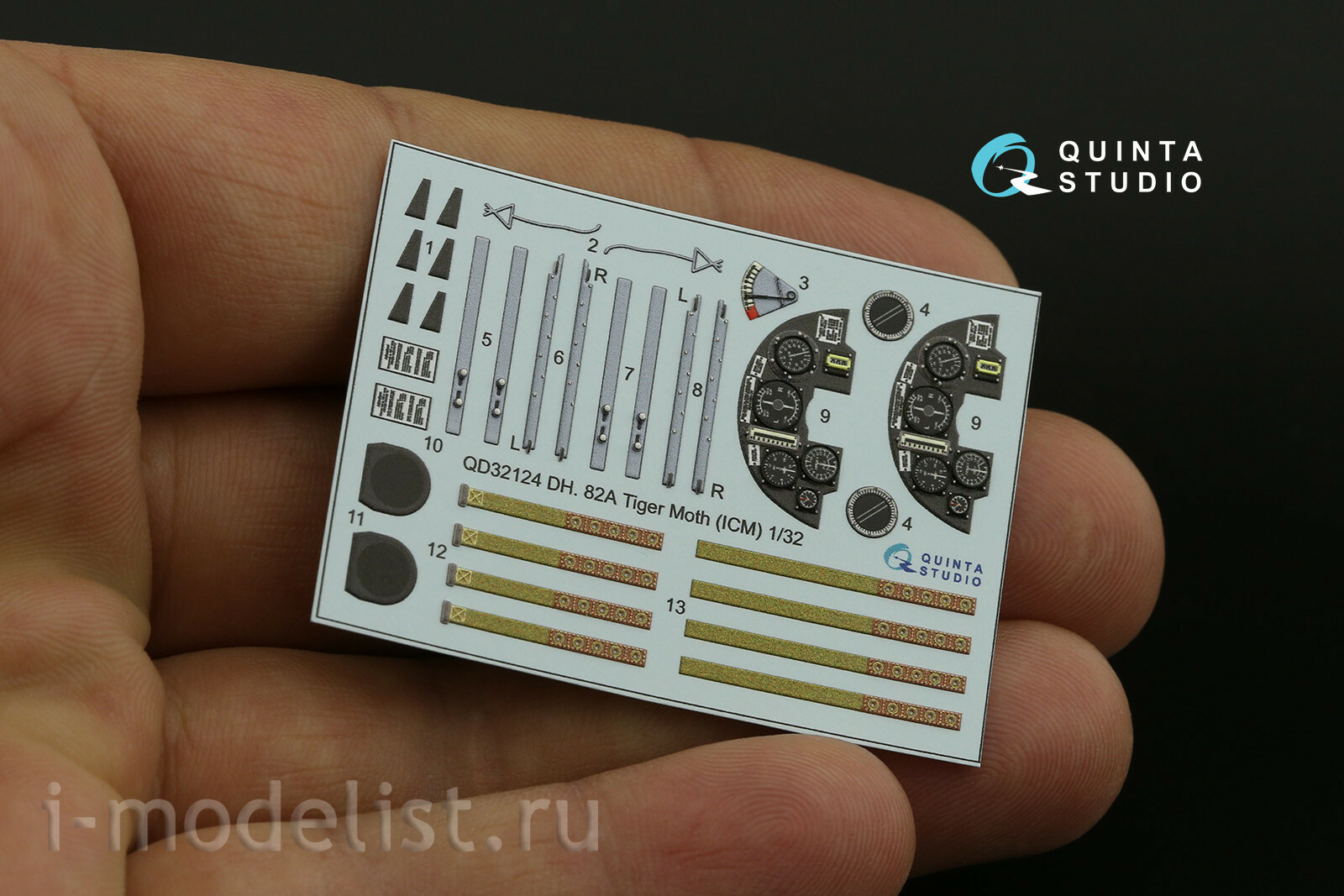 QD32124 Quinta Studio 1/32 3D Декаль интерьера кабины DH 82A Tiger Moth (ICM)