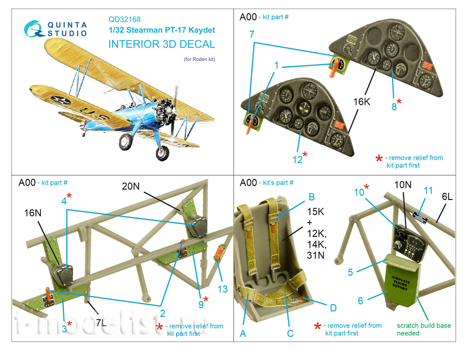 QD32168 Quinta Studio 1/32 3D Декаль интерьера кабины Pt-17 Kaydet (Roden)