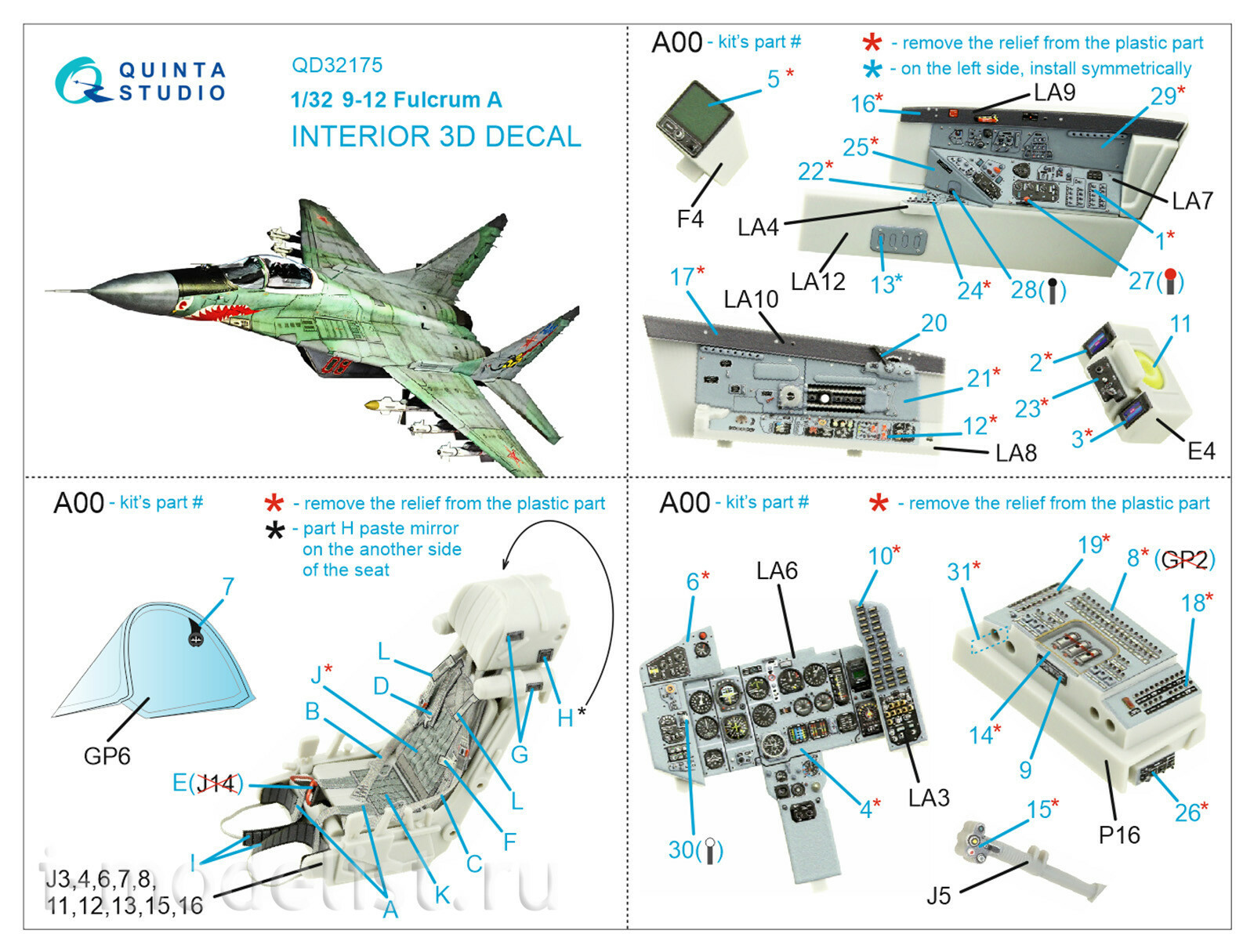 QD32175 Quinta Studio 1/32 3D Декаль интерьера кабины MiGG-29 9-12 (Трубач)
