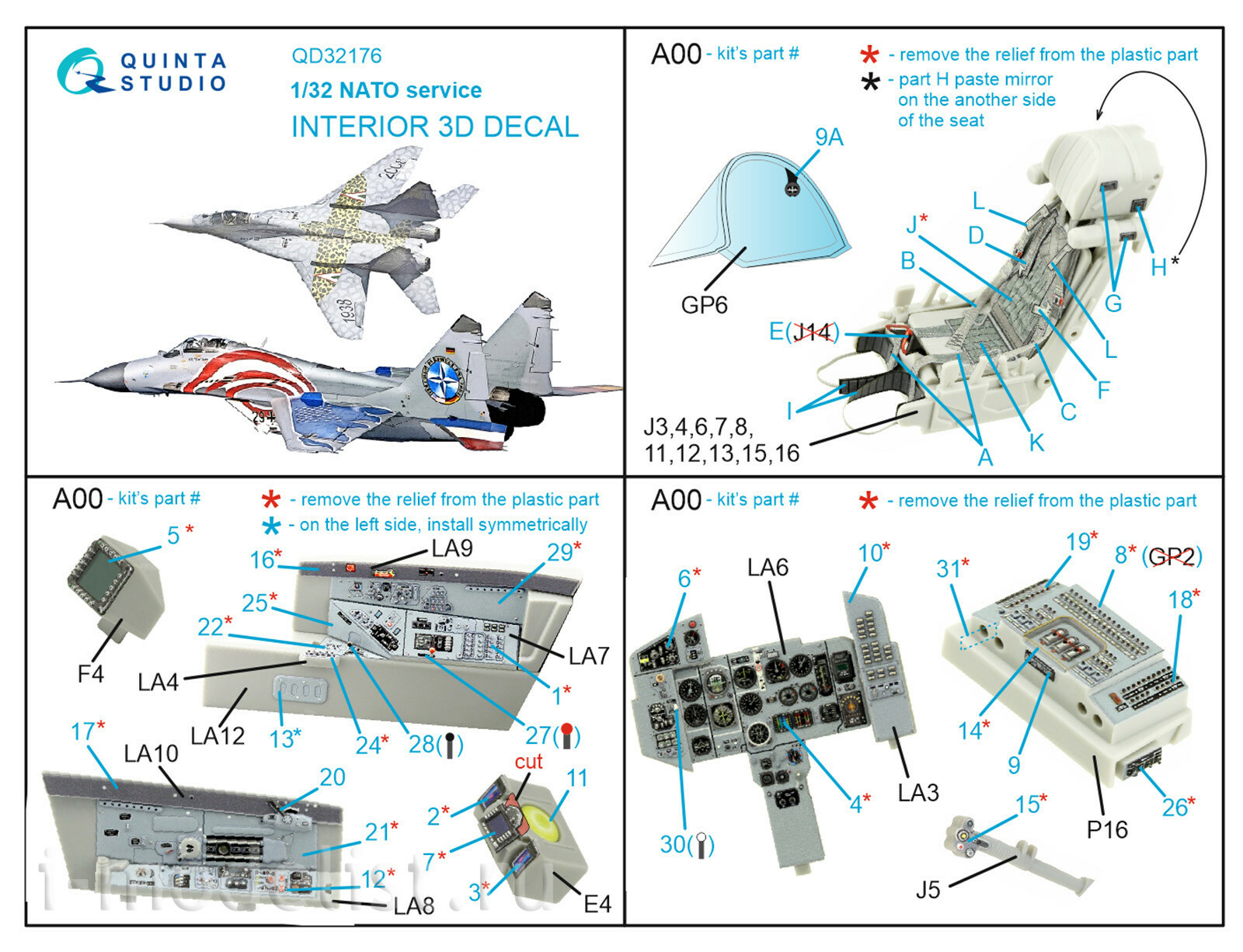 QD32176 Quinta Studio 1/32 3D Декаль интерьера кабины MiGG-29A NATO service (Трубач)