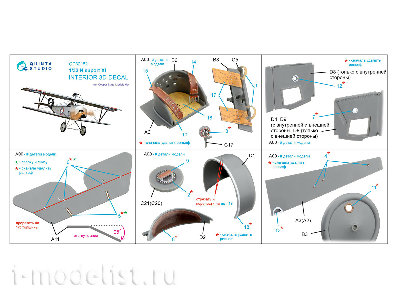 QD32182 Quinta Studio 1/32 3D Декаль интерьера кабины Nieuport XI (CSM)
