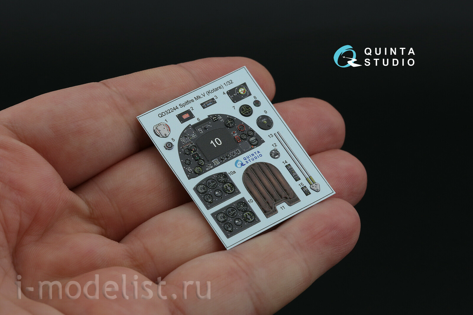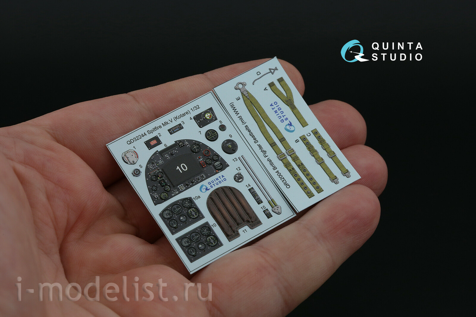 QD32244 Quinta Studio 1/32 3D Декаль интерьера кабины Spitfire Mk.V (Kotare)