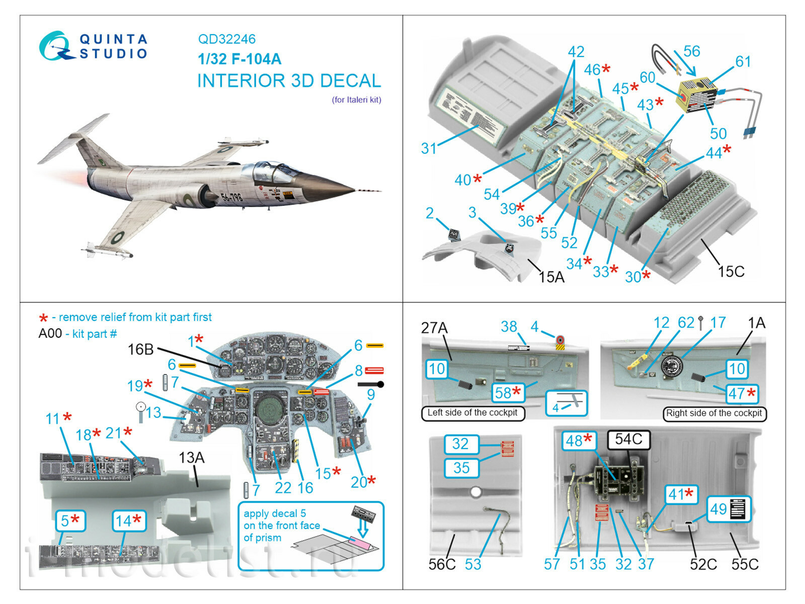 QD32246 Quinta Studio 1/32 3D Декаль интерьера кабины F-104A (Italeri)