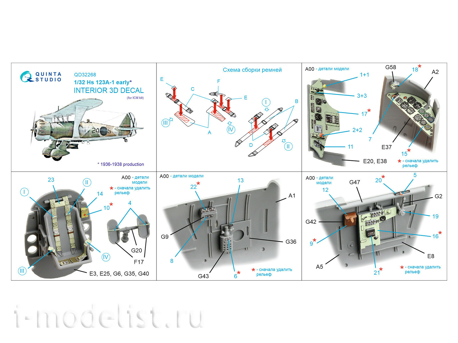 QD32268 Quinta Studio 1/32 3D Декаль интерьера кабины Hs 123A-1 early (ICM)