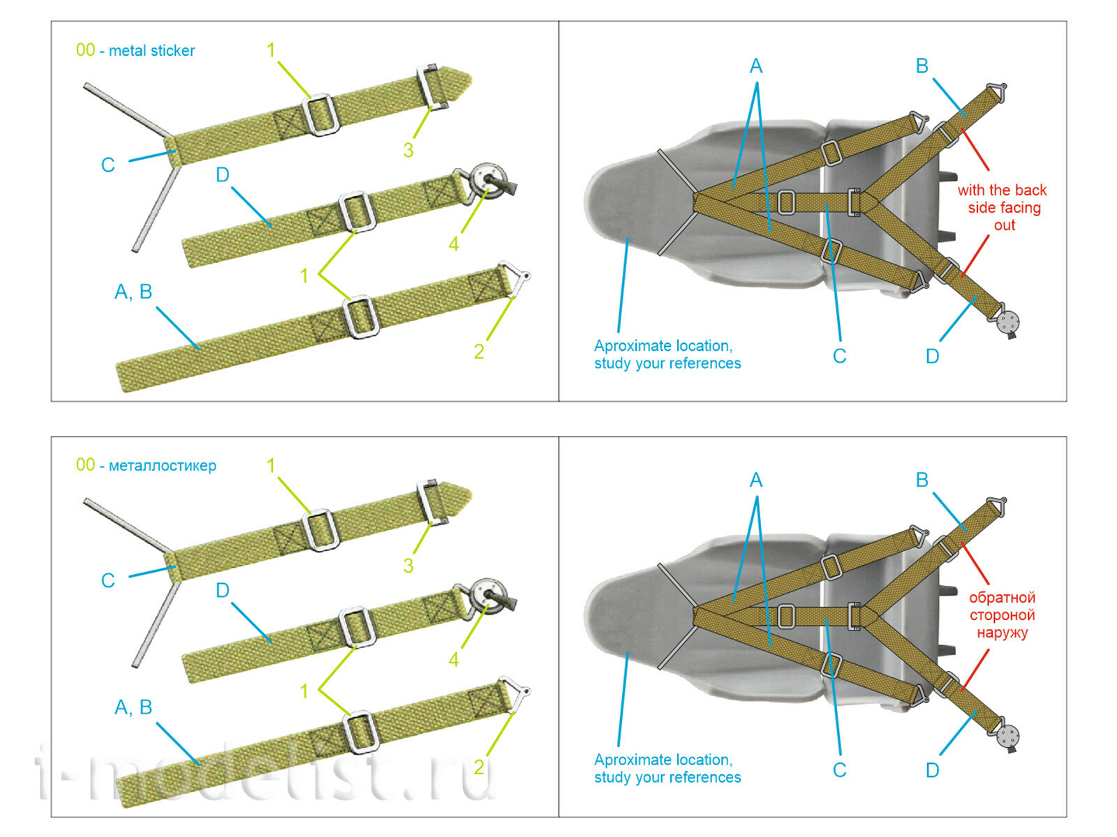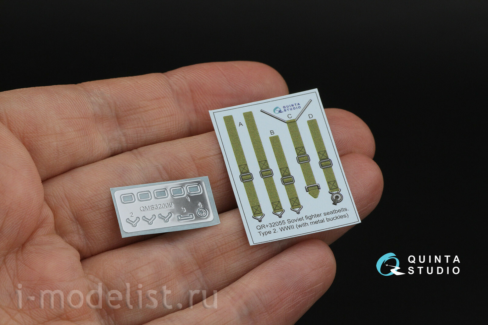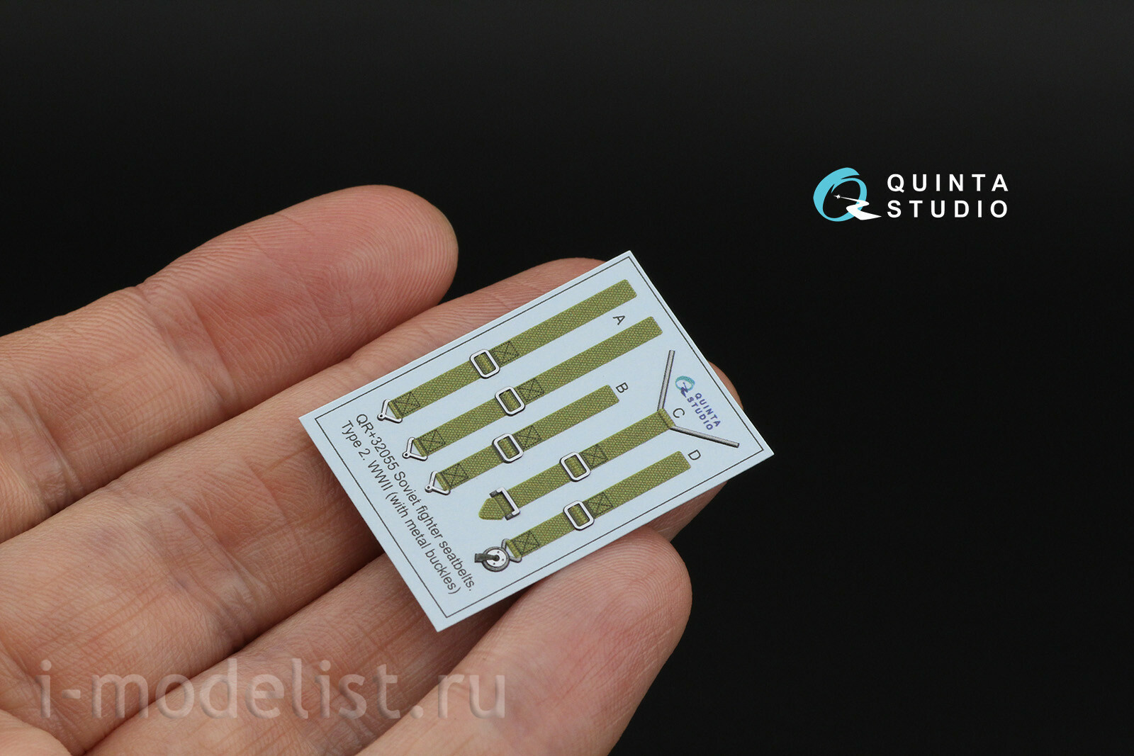 QR+32055 Quinta Studio 1/32 Комплект ремней для самолета ВВС РККА тип 2, ВОВ (с металлическими пряжками) (для всех моделей)