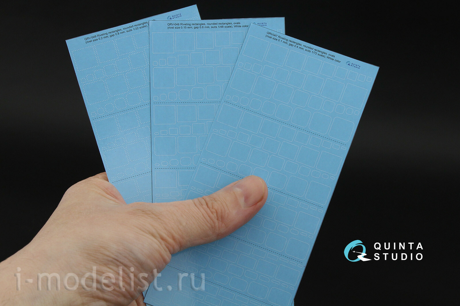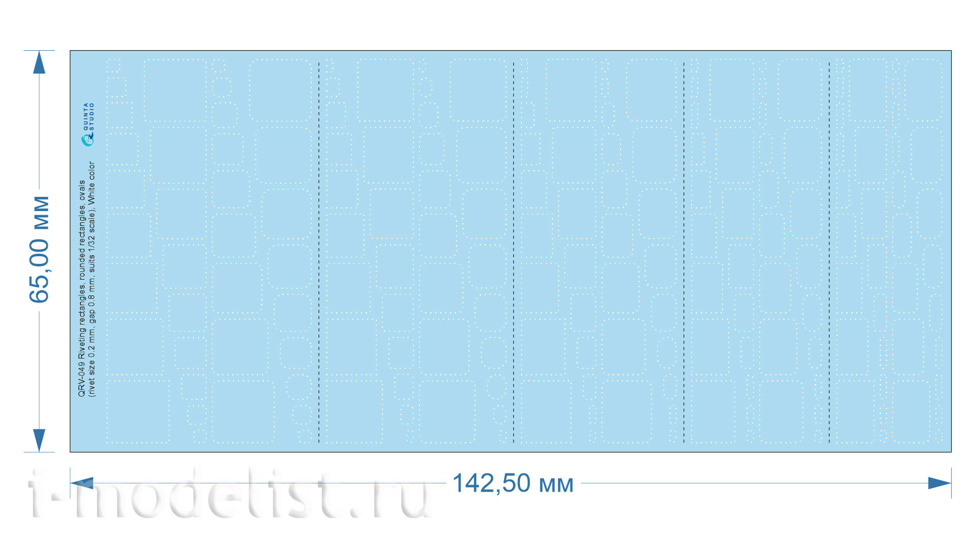 QRV-049 Quinta Studio 1/32 Клепочные ряды: прямоугольники и овалы (размер клепки 0.20 mm, интервал 0.8 mm, масштаб 1/32), белые
