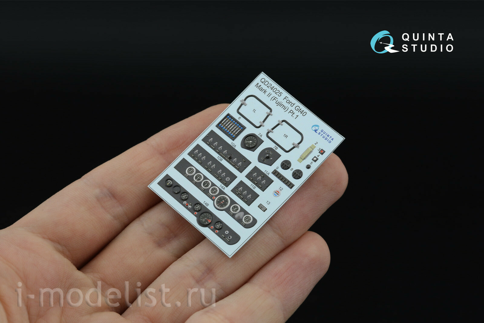 QD+24025 Quinta Studio 1/24 3D Декаль интерьера кабины Ford GT40 Mark II (Fujimi) (с 3D-печатными деталями)