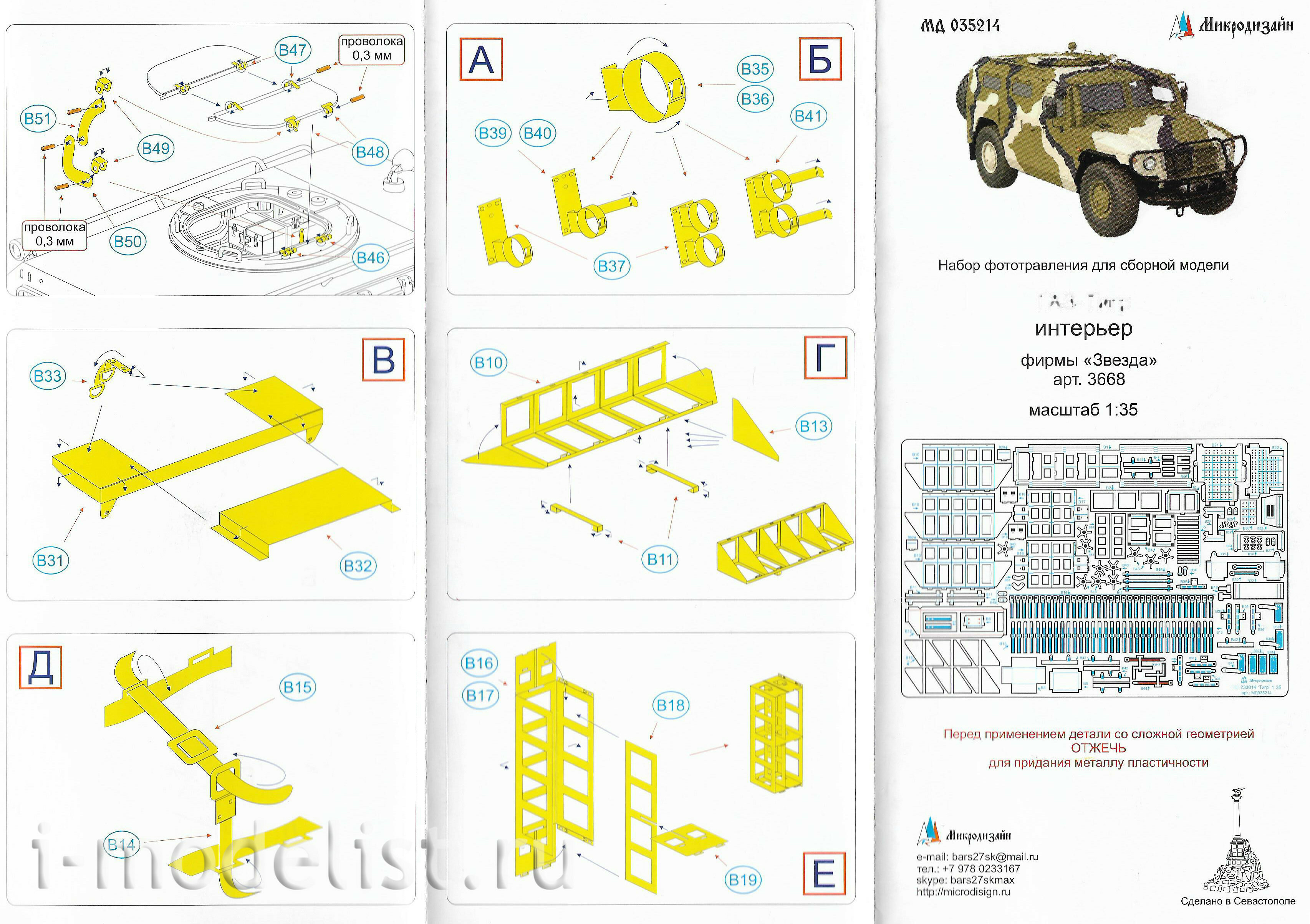 035214 Микродизайн 1/35 Набор фототравления для сборной модели G@Z-Тигр интерьер (Звезда)