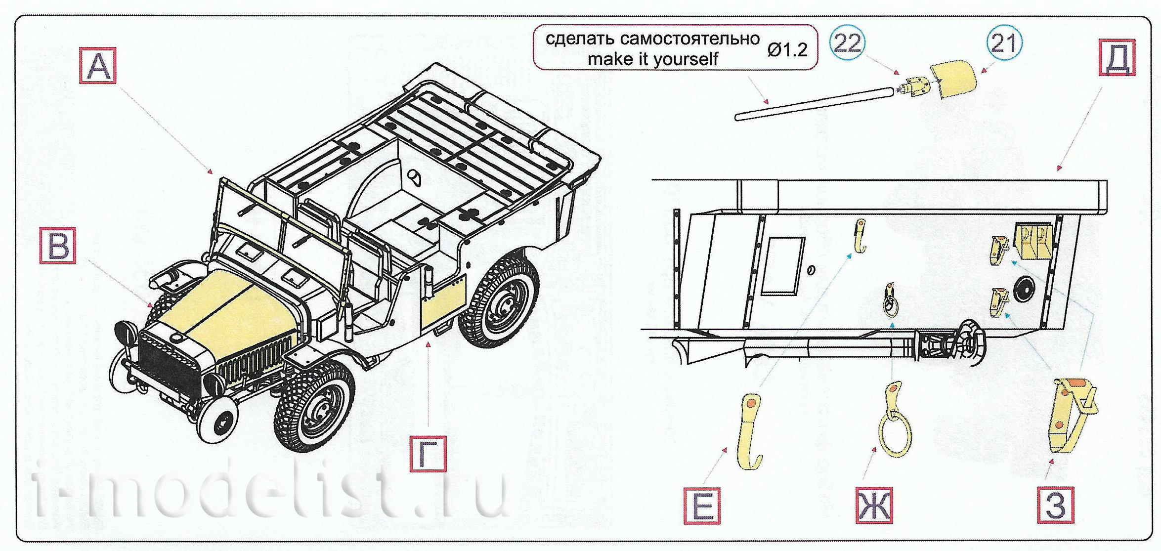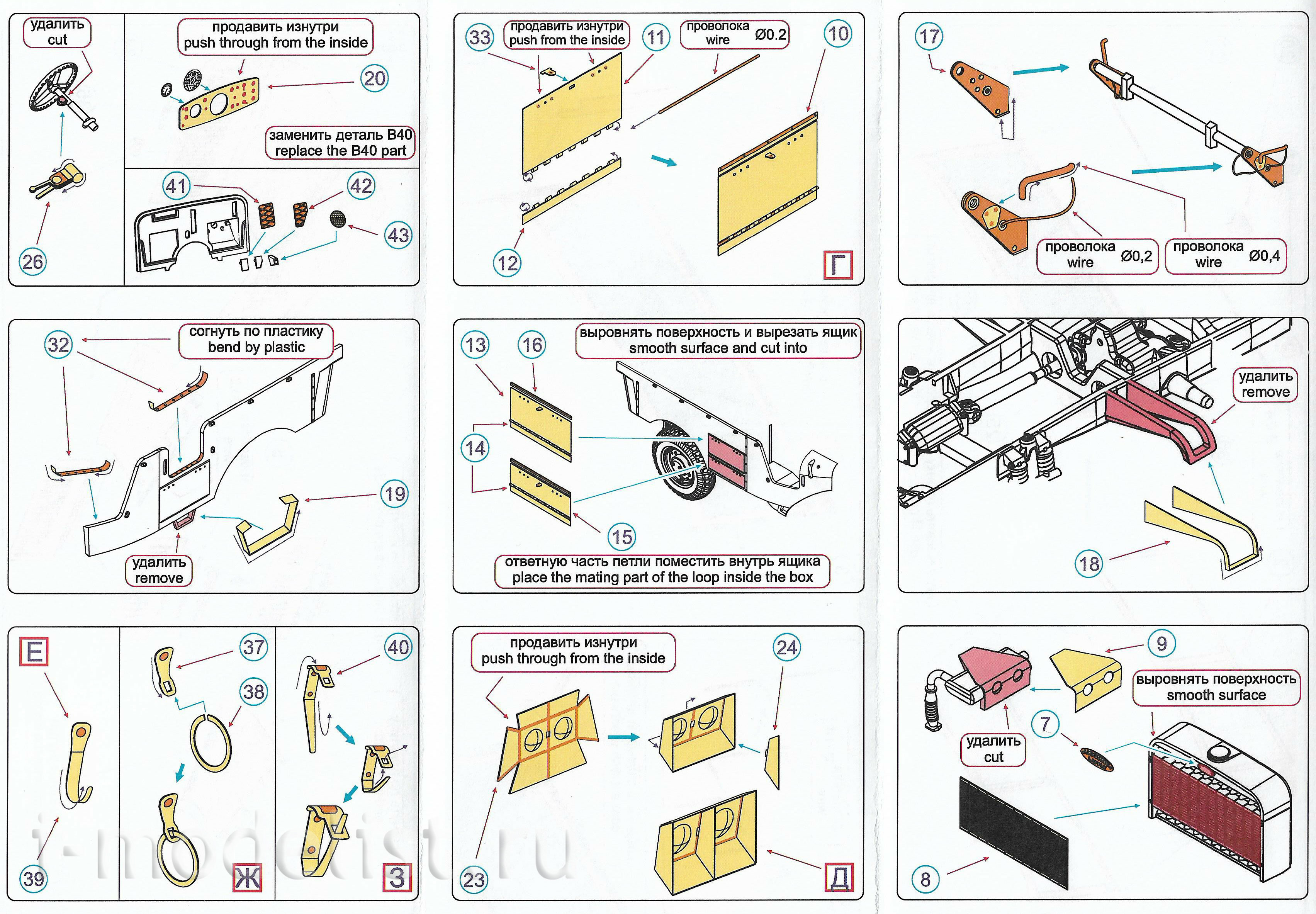 Материал: латунь 0,15 мм. Набор комплектуется платой фототравления и цветной инструкцией. Количество уникальных деталей: 40 шт.