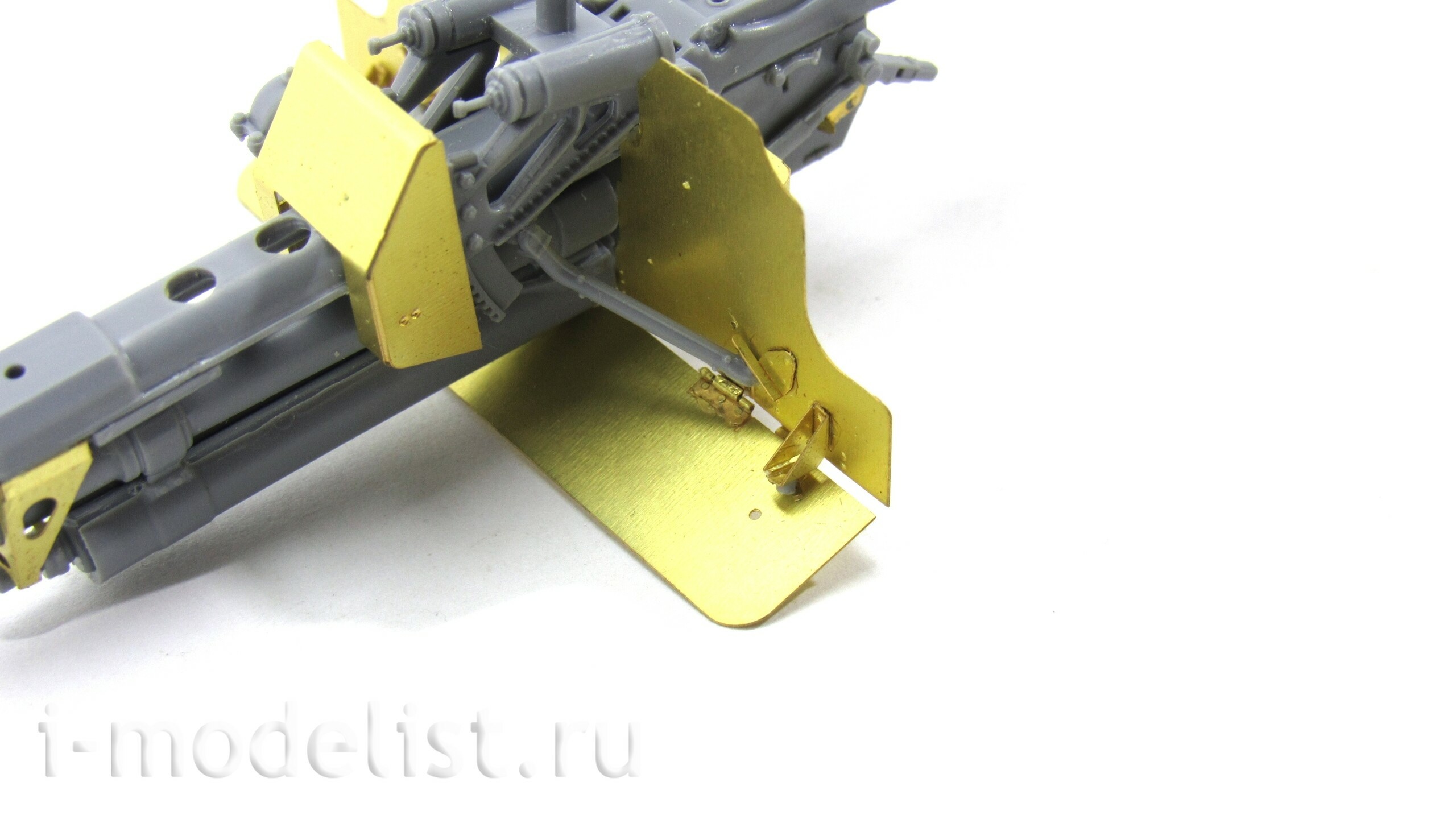 Материал: латунь 0,15 мм. Набор комплектуется платой фототравления и цветной инструкцией. В набор входят два варианта щитов (ранний и поздний). Количество уникальных деталей: 57 шт.