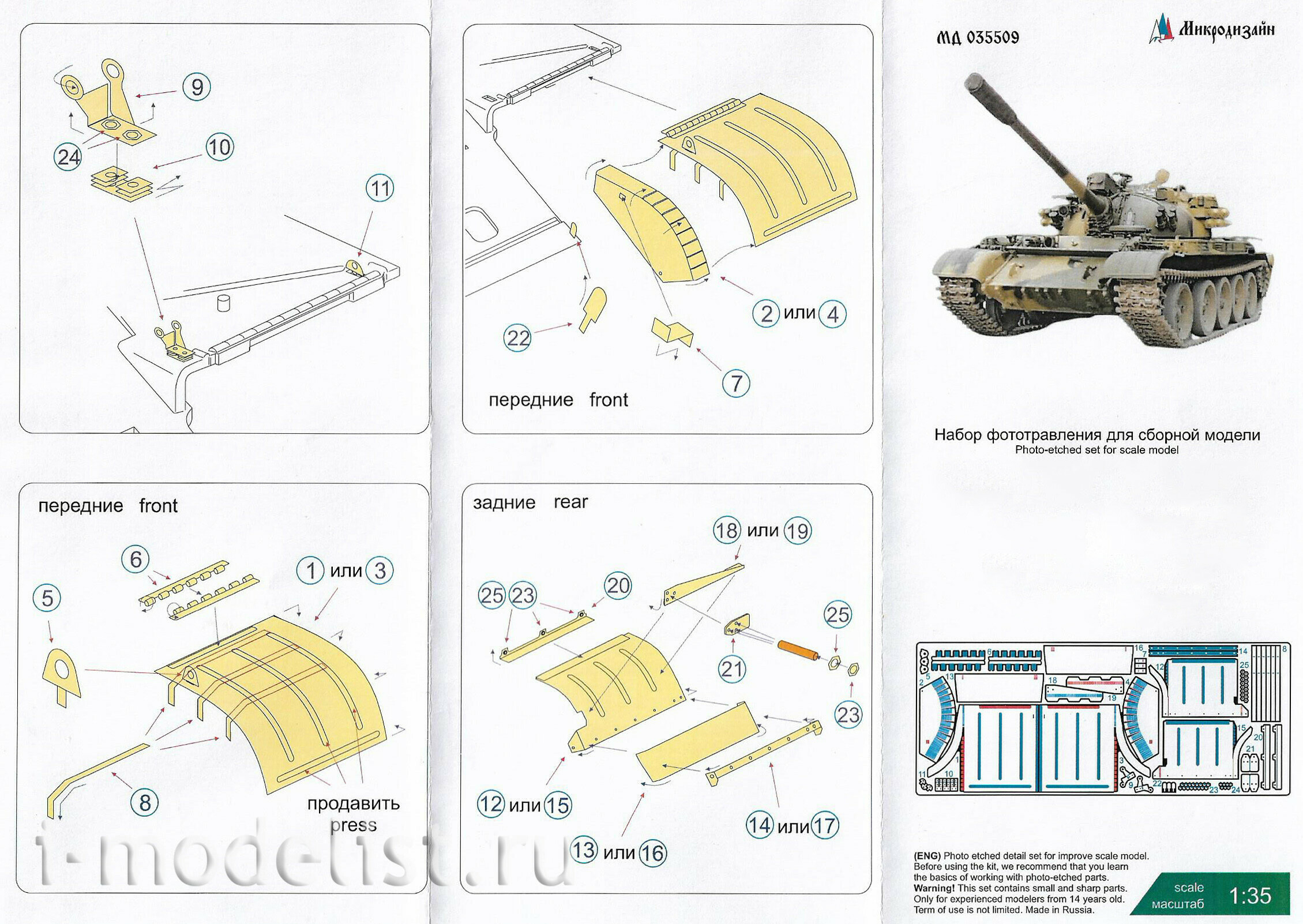 Материал: латунь 0,15 мм. Набор комплектуется платой фототравления и цветной инструкцией. Количество уникальных деталей: 25 шт.