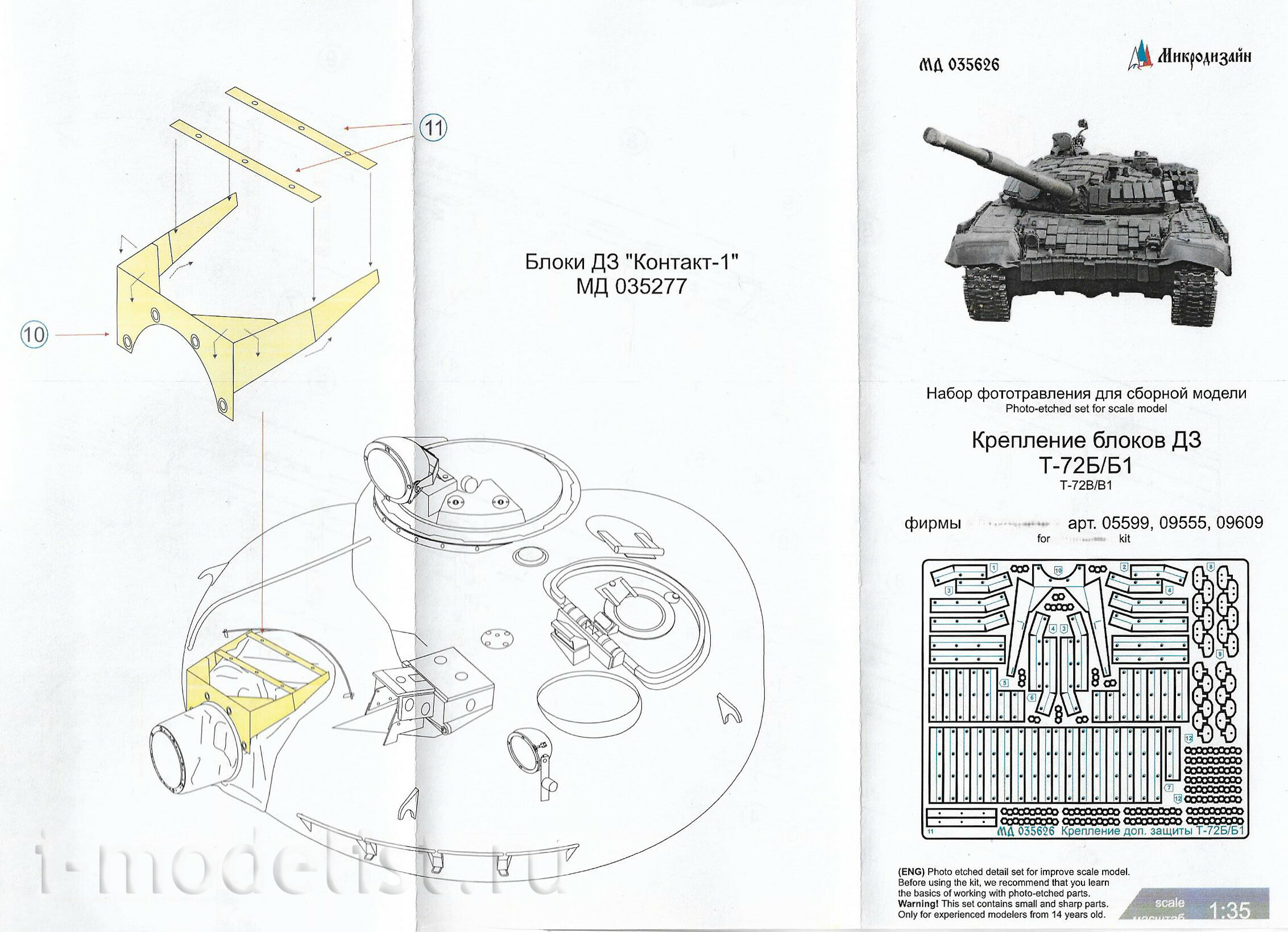 035626 Микродизайн 1/35 Набор фототравления креплений для блоков дополнительной защиты на Т-72Б/Б1 (Трубач)