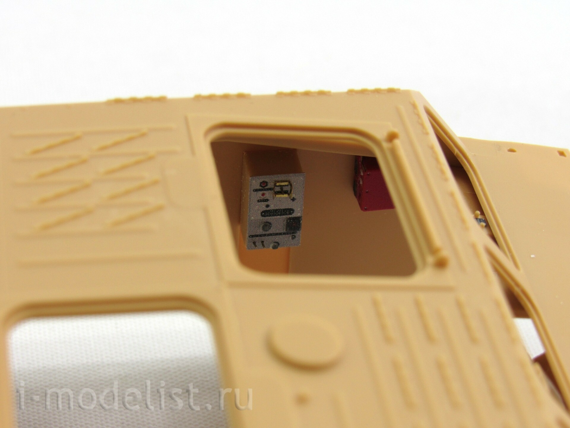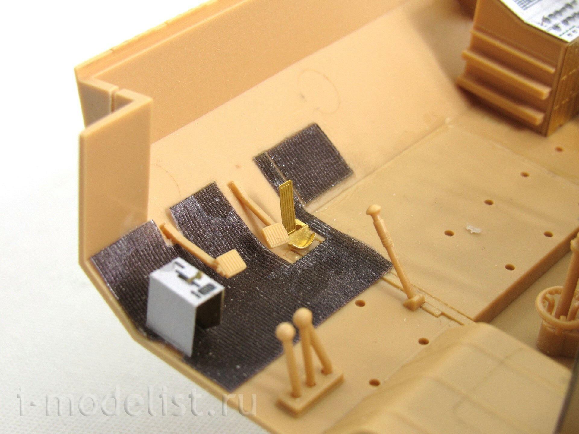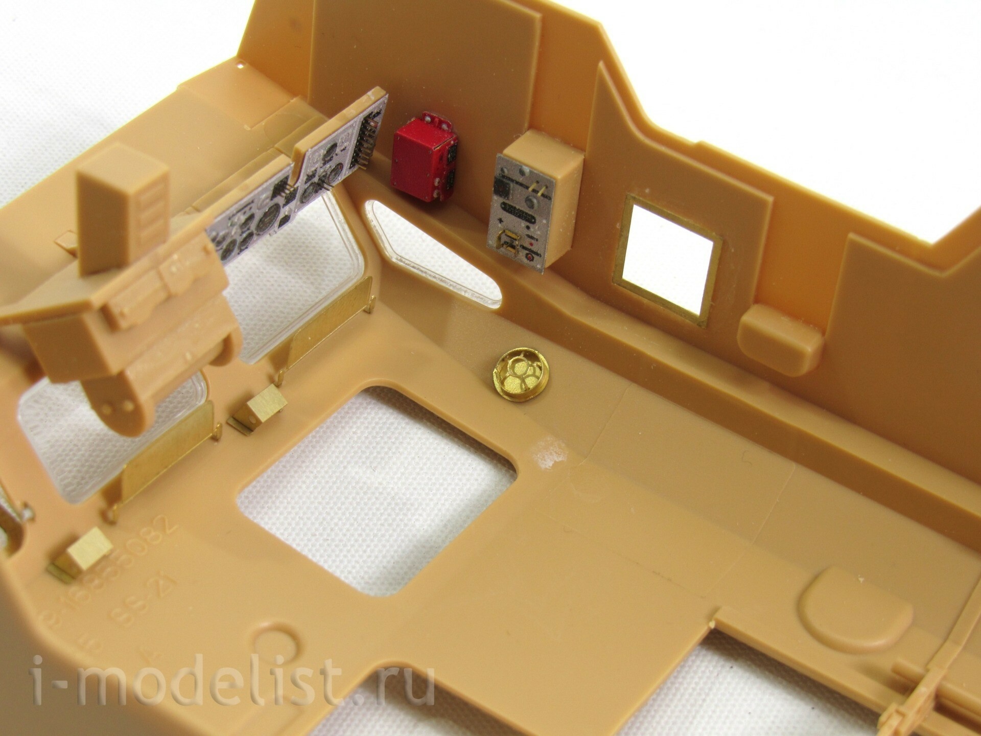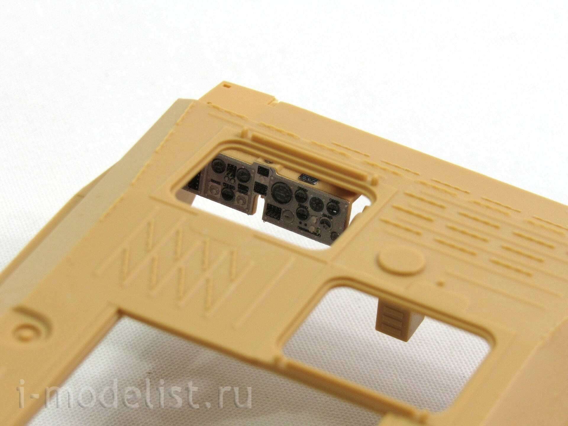 Материал: латунь 0,15 мм. Набор комплектуется 2 пластинами фототравления, 1 плёнкой остекления кабины, объёмным (3D печать) ковриком и полноцветной инструкцией. Количество уникальных деталей: 60 шт.
