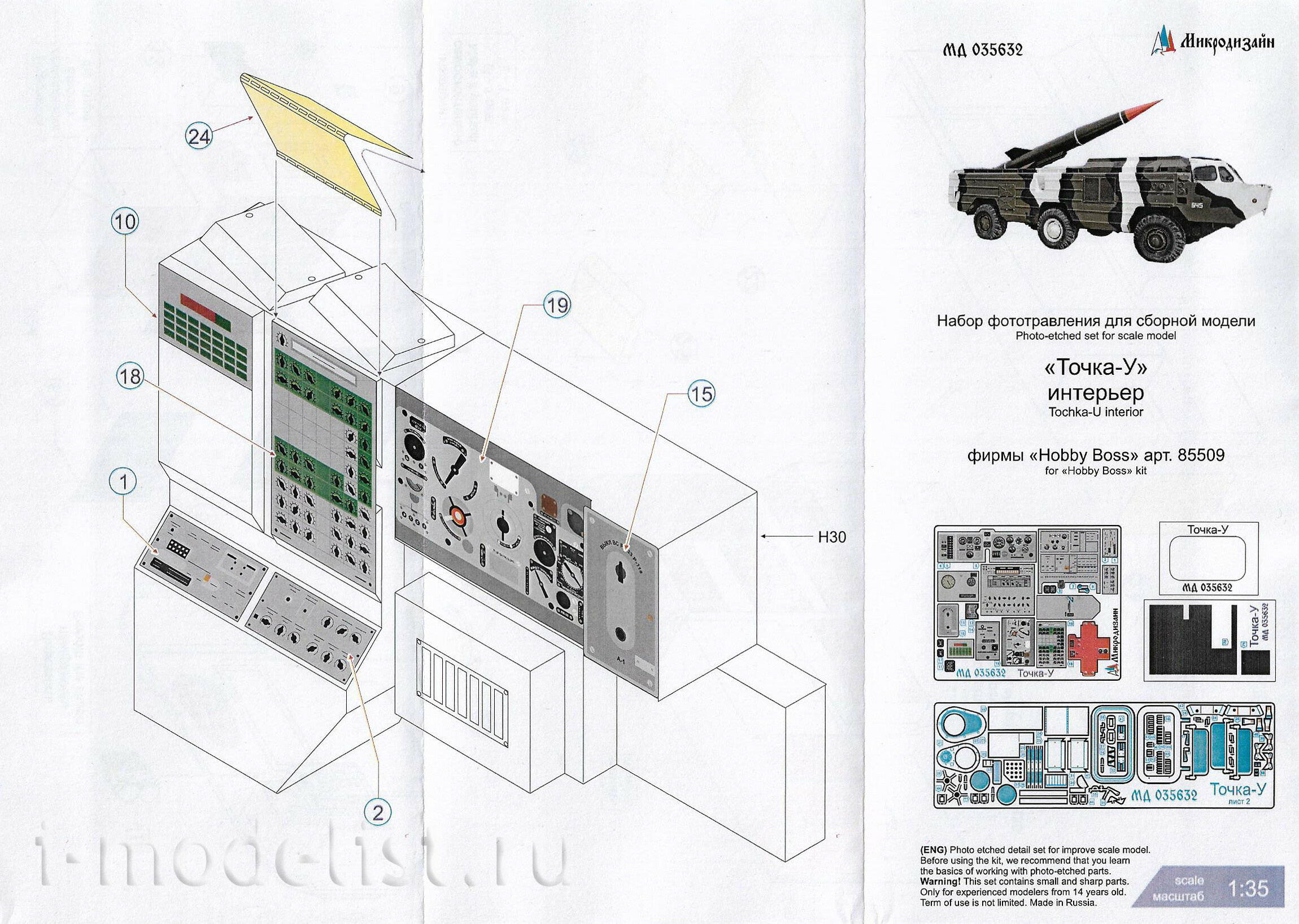 035632 Микродизайн 1/35 Набор фототравления интерьера ракетного комплекса Точка-У (HobbyBoss)
