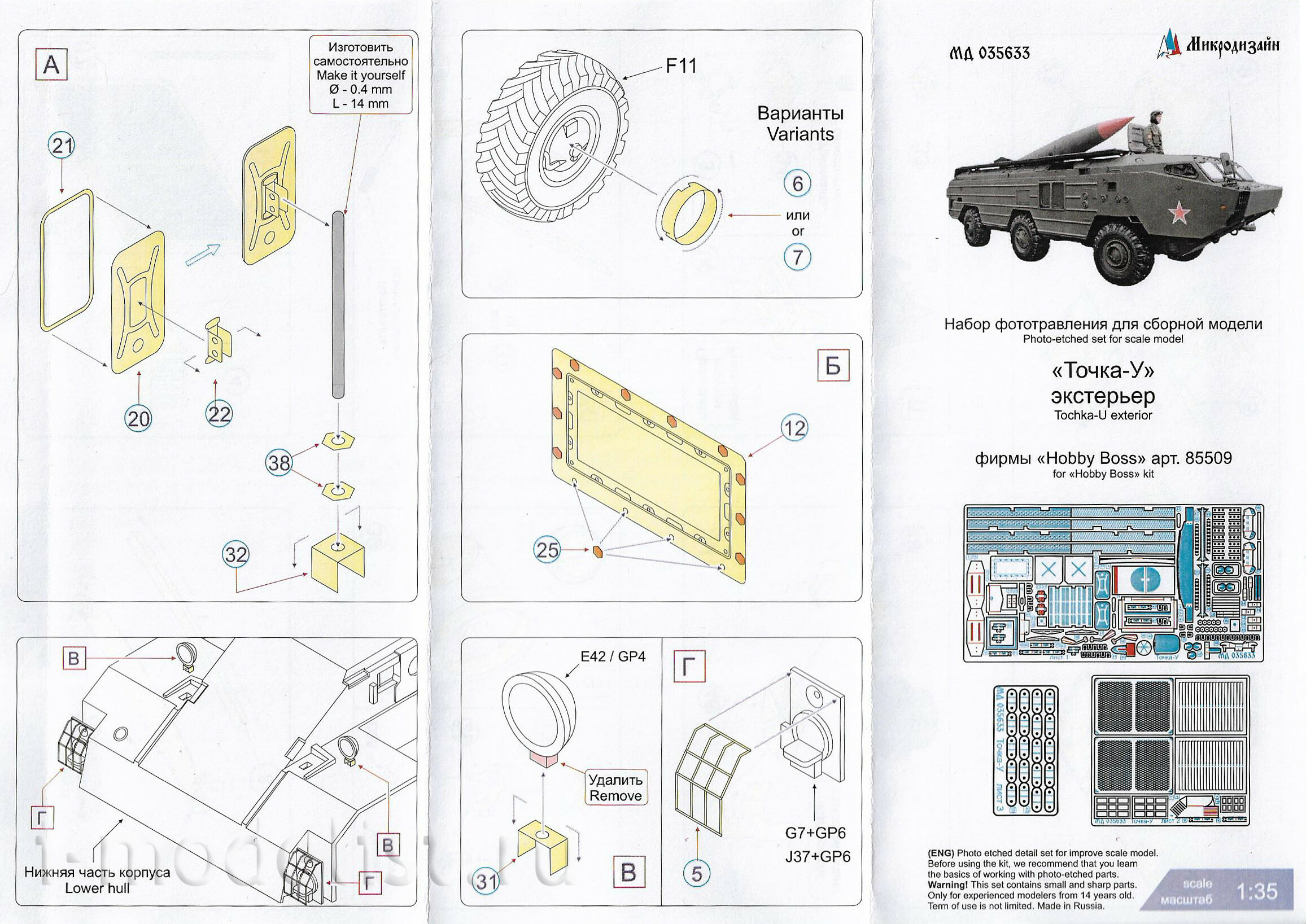 035633 Микродизайн 1/35 Набор фототравления экстерьера ракетного комплекса Точка-У (HobbyBoss)