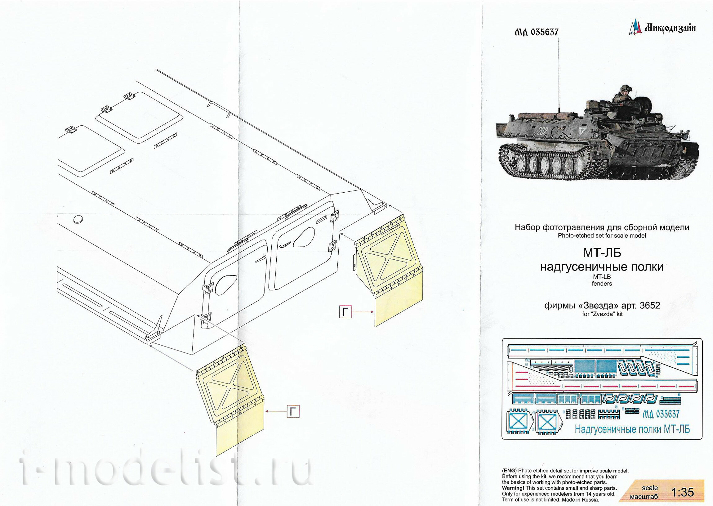 035637 Микродизайн 1/35 Набор фототравления надгусеничных полок МТ-ЛБ (Звезда)